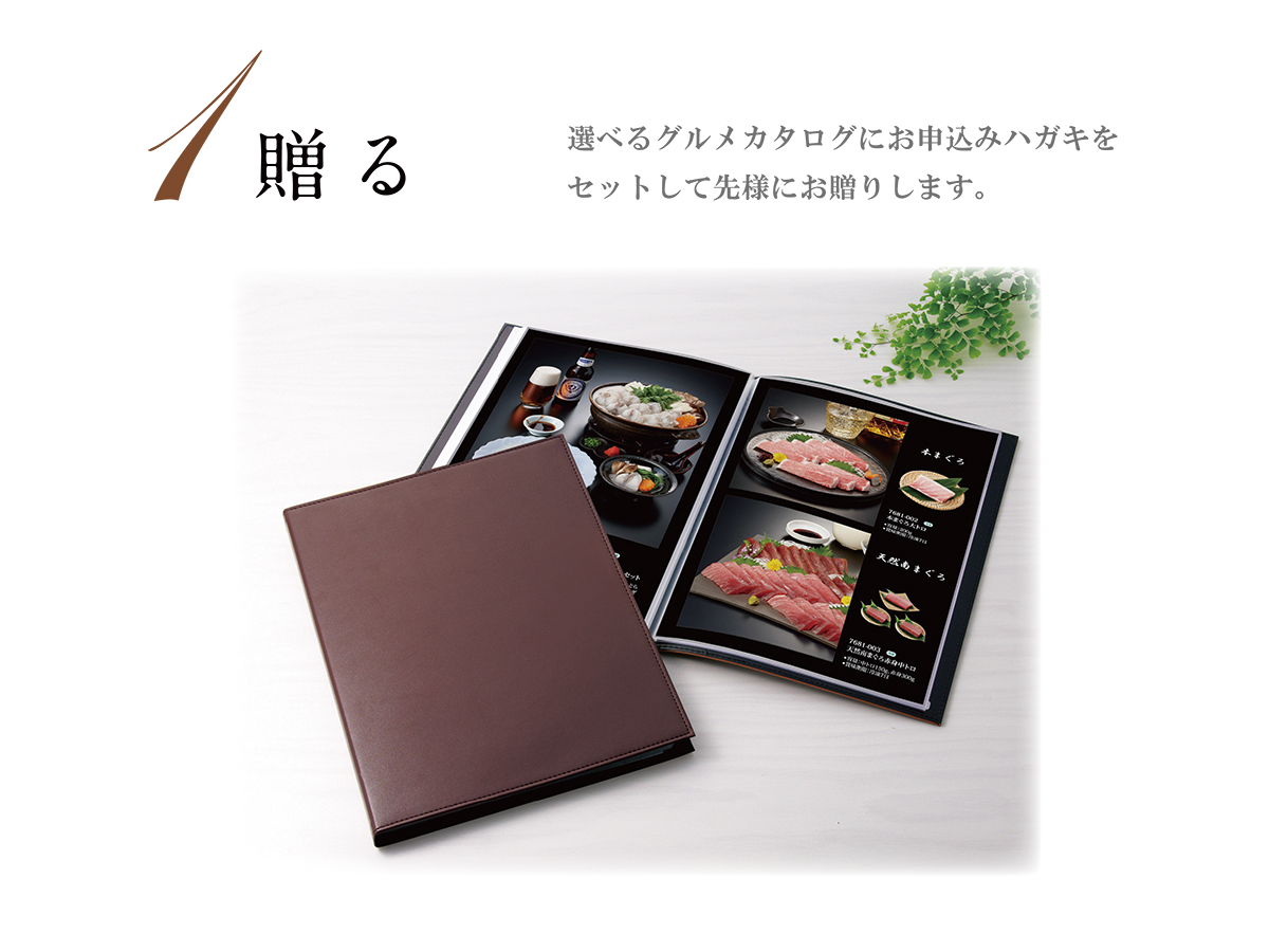 お食事券とグルメカタログの両方の良い点を兼ね備えた ”おもてなしを贈るカタログギフト”、こちらを選んでいただいたお客様から 「グルメを選んだ後にファイルとして使えるのが面白い」 「ファイルが高級感があって、選ぶ時間もレストランにいるみたいで楽しかったと喜んでもらえた」 という嬉しいお声をいただいております。