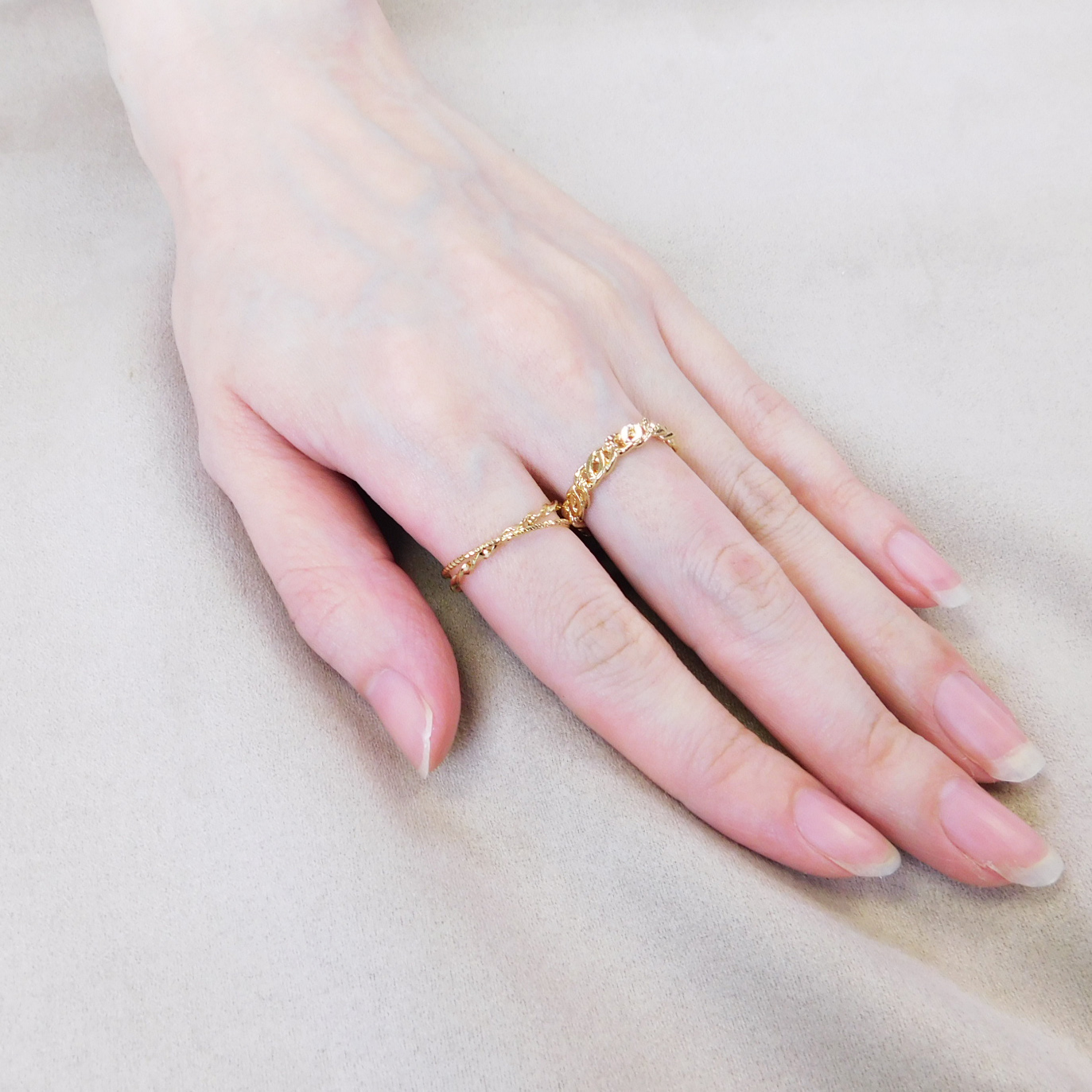 大口注文・法人のお問い合わせはこちら【ナツコ・グレース】のメタルチェーンモチーフリングと二連デザインリングをセットにしてお届けします。 「大切な人にもっとおしゃれを楽しんでほしい。」「自分自身をもっと輝かせたい。」 そんな想いを持つ方に贈りたいアクセサリーです。