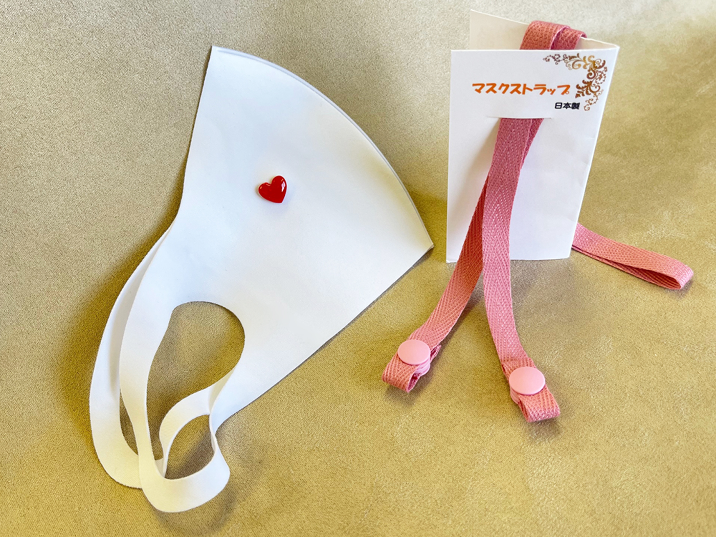 マスクに装着するだけで、気軽にマスクのおしゃれを楽しめるマスクピアスと、ちょっと外したいというときにも便利なマスクストラップの2個セット。選べる6色のカラーバリエーション。マスクが手放せない今だからこそ贈りたい、おしゃれを快適に楽しめるアイテムです。
