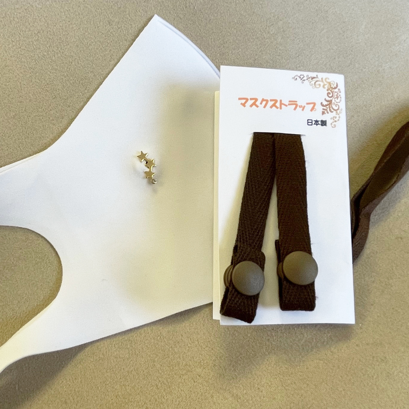 ピアスの使い方はとっても簡単!スナップボタン式になっていますので、お手持ちのマスクに装着するだけ。 ストラップは、ちょっと外したマスクの置き場所に困ることがなくなる便利アイテム。 こちらのセットがあれば、マスクを使ったおしゃれを快適にお楽しみいただけます。