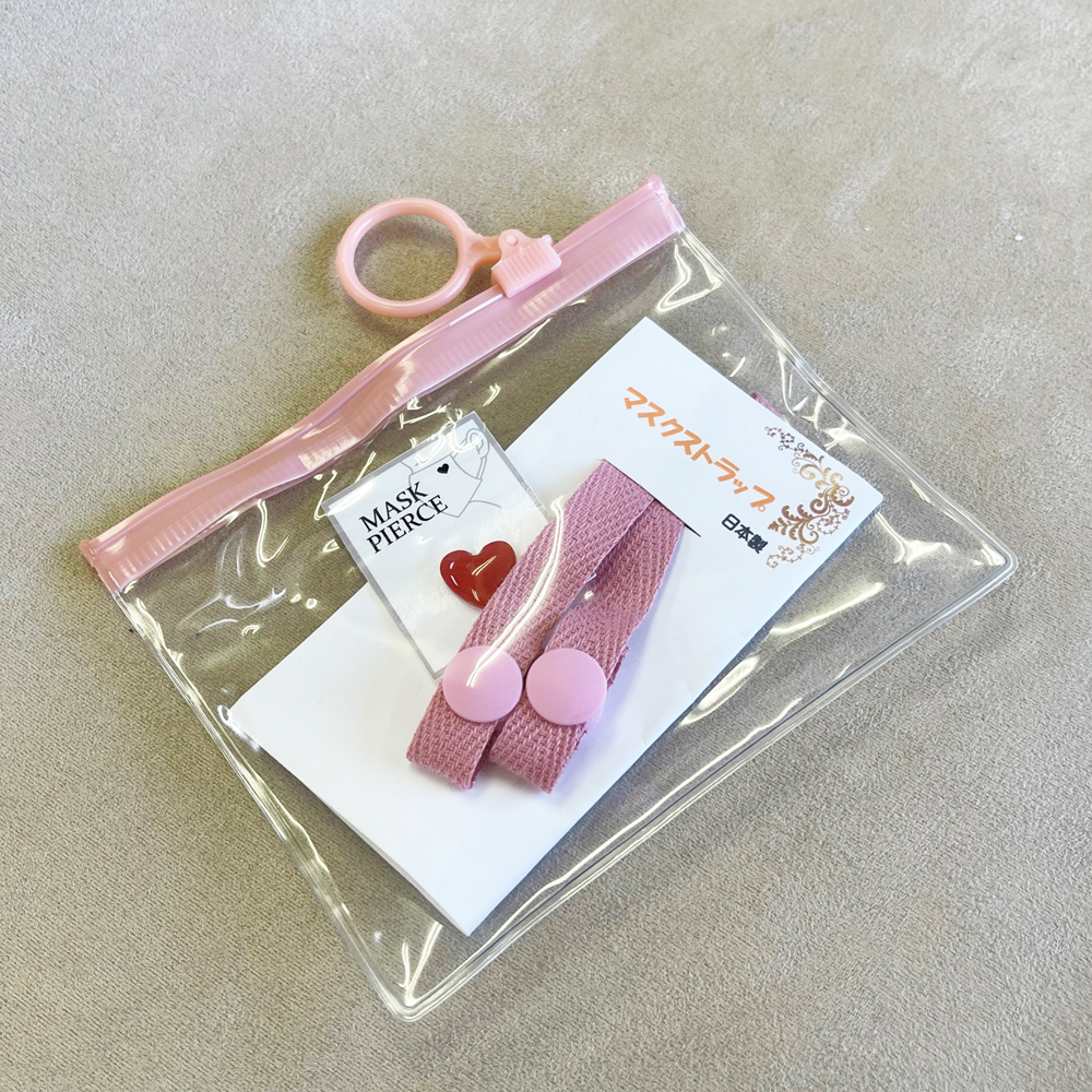 大切なアクセサリーに傷がつかないように、スライド式のビニールケースに入れてお届けします。 商品を取り出したあとは、マスク入れにぜひお使いください。