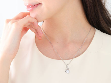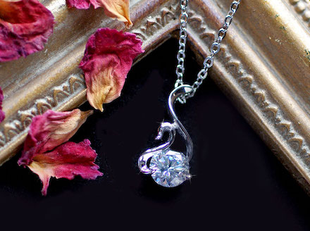 湖面に浮かぶ1羽の美しい白鳥をモチーフにした、ちょっと珍しいデザインのネックレスです。ペンダントトップには最高級AAAAAランクの