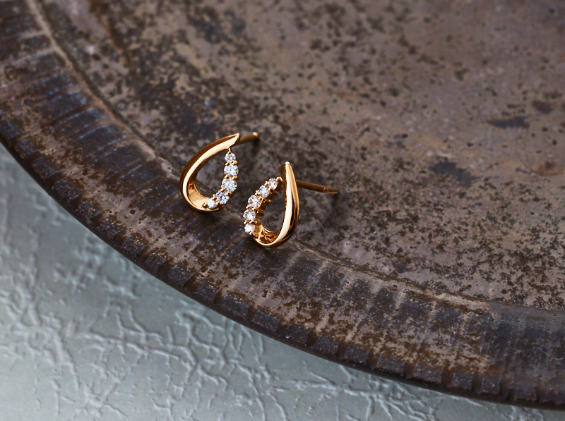 大口注文・法人のお問い合わせはこちらダイヤモンドピアス イエローゴールドで描かれたしずくで、ダイヤモンドのきらめきが、上質な輝きを放つピアス。 ダイヤモンドの豊かなきらめきが、立体感とつやめきをプラスし、 丸みを帯びたフォルムと合わせて、顔回りを潤いに満ちた印象に仕上げます。