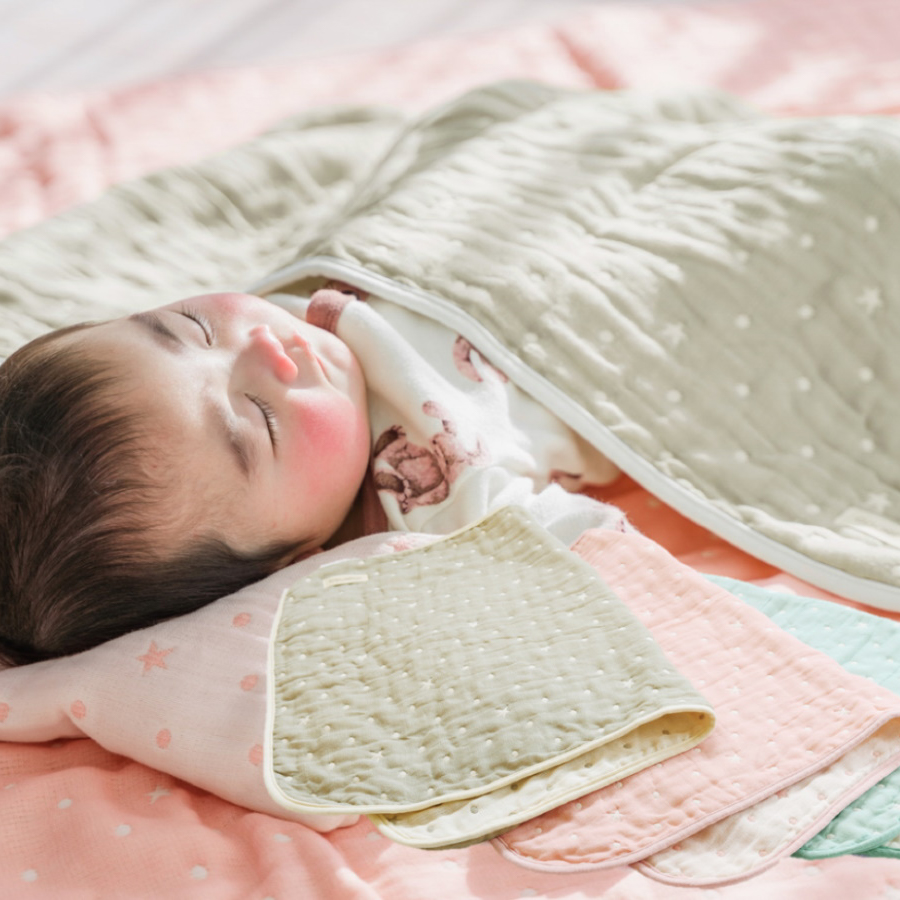 1日の睡眠時間が長いベビーには、軽くて柔らかなガーゼ素材がぴったりです。セキュリティブランケットよりも少し大きめだから、小さなお子様のお昼寝ケットとしてもおすすめです。
