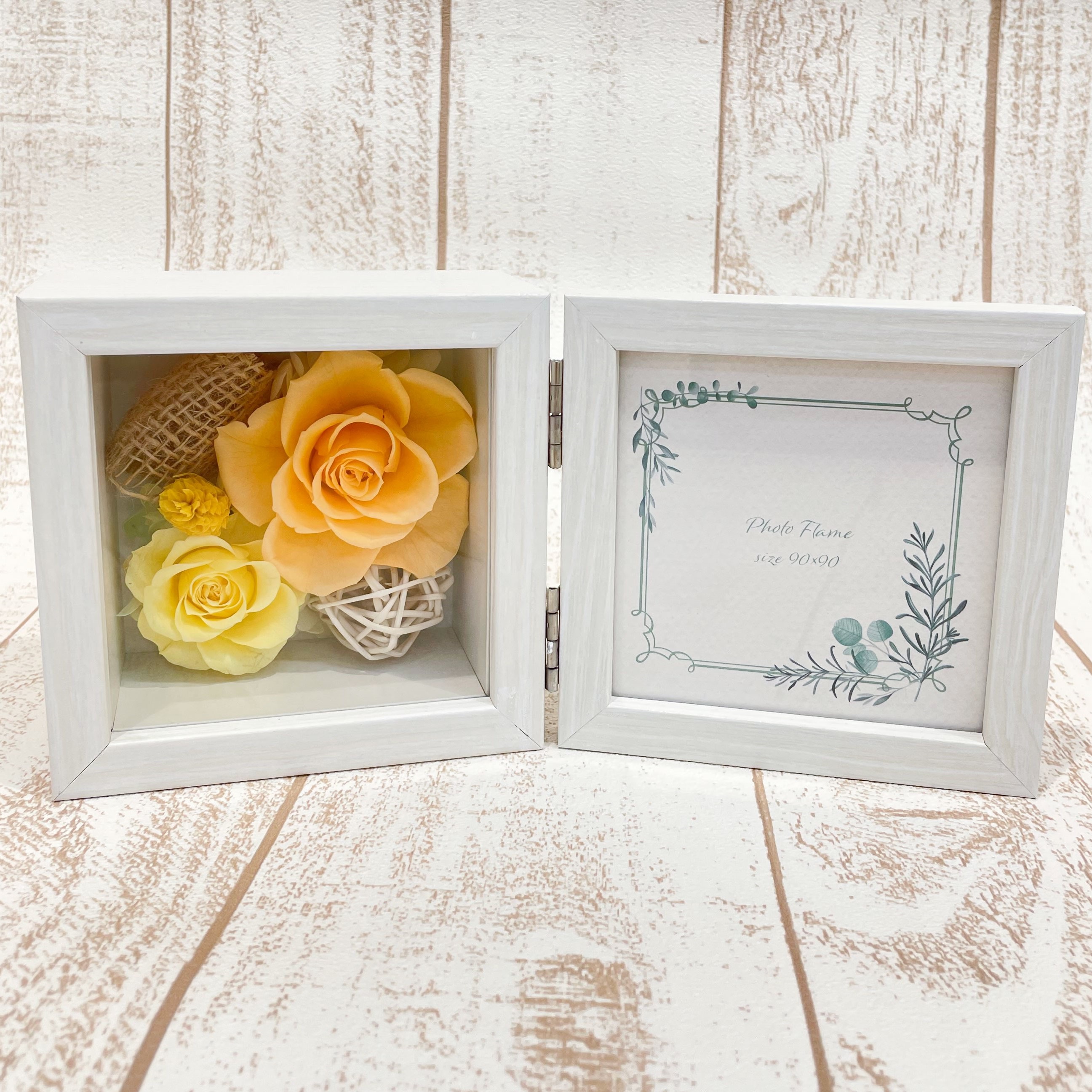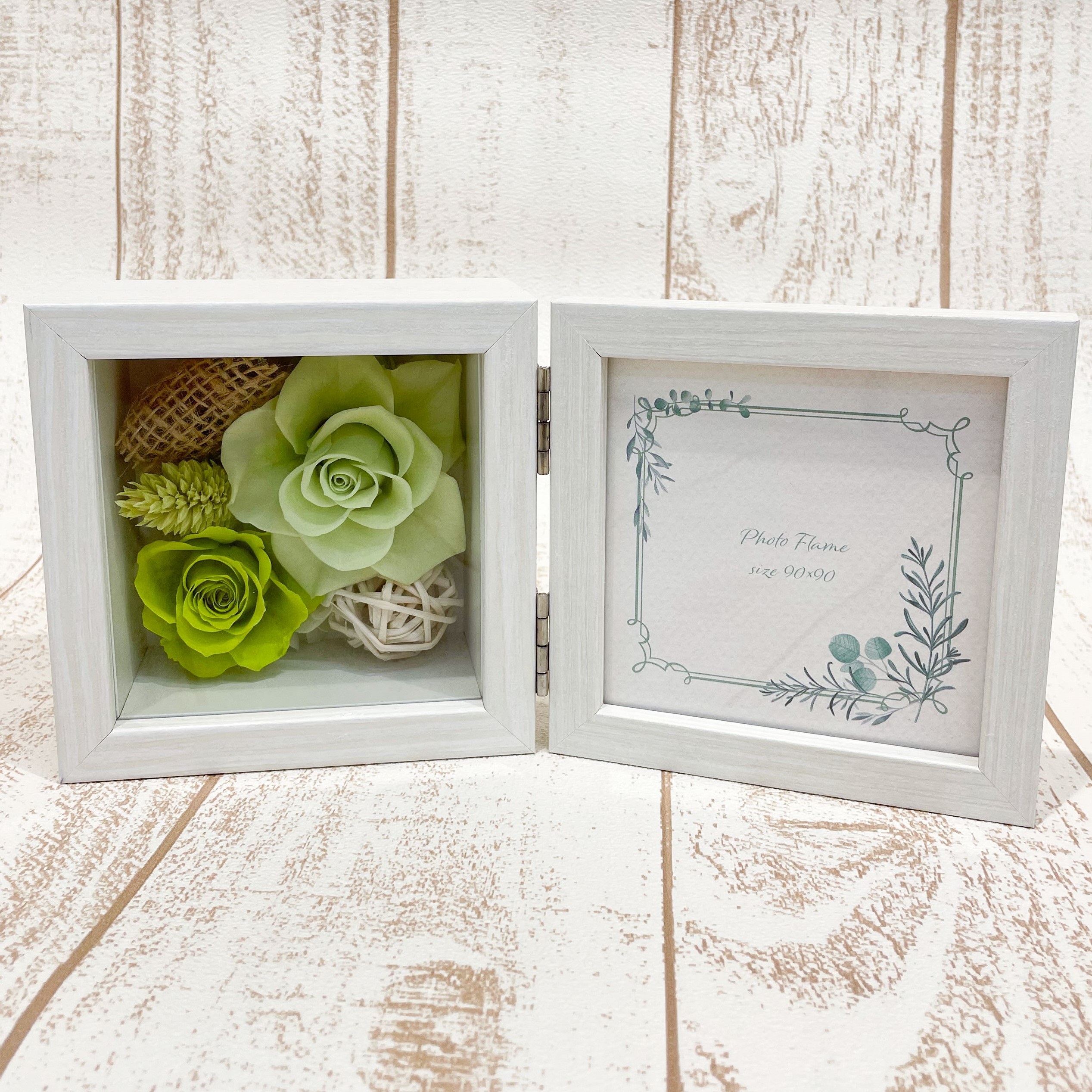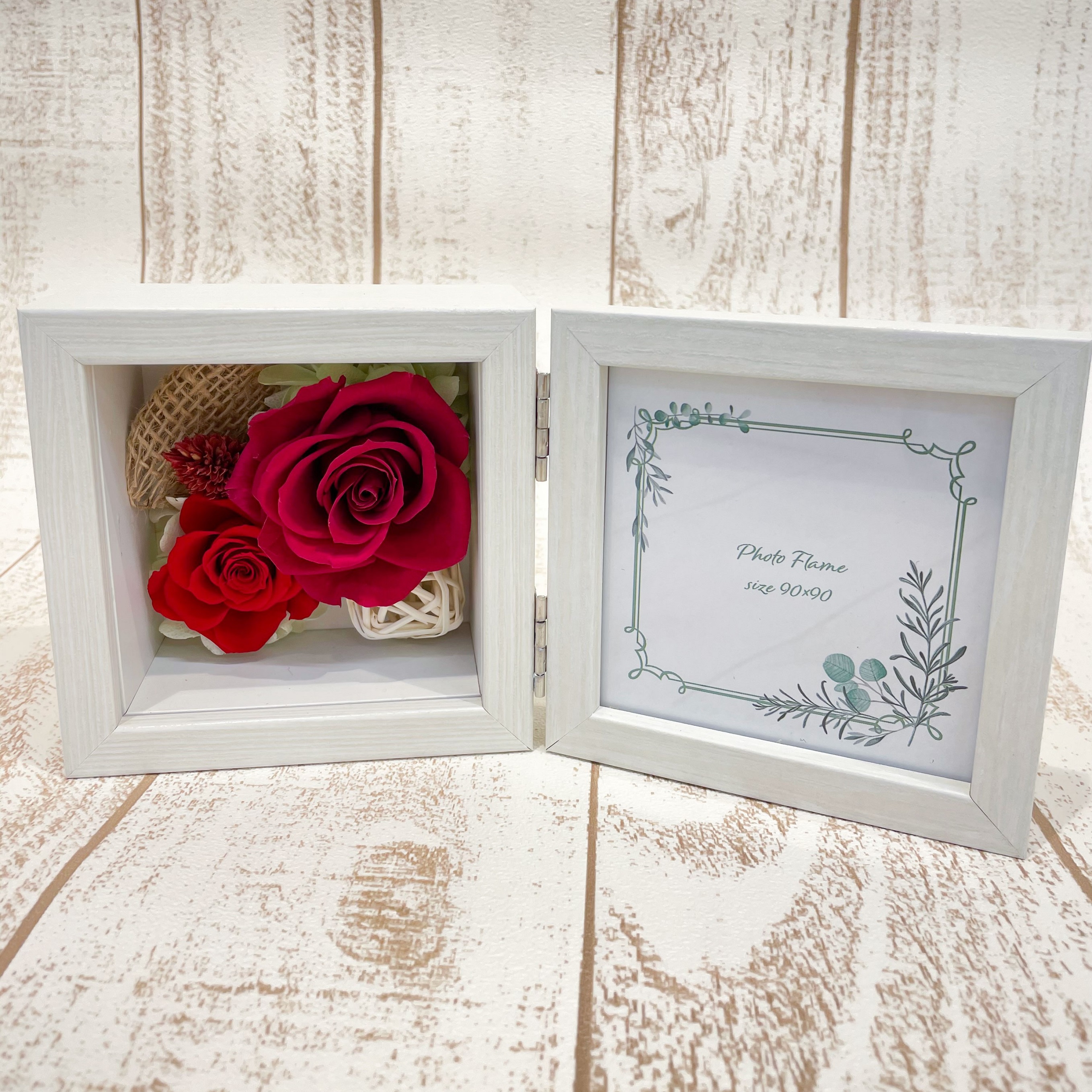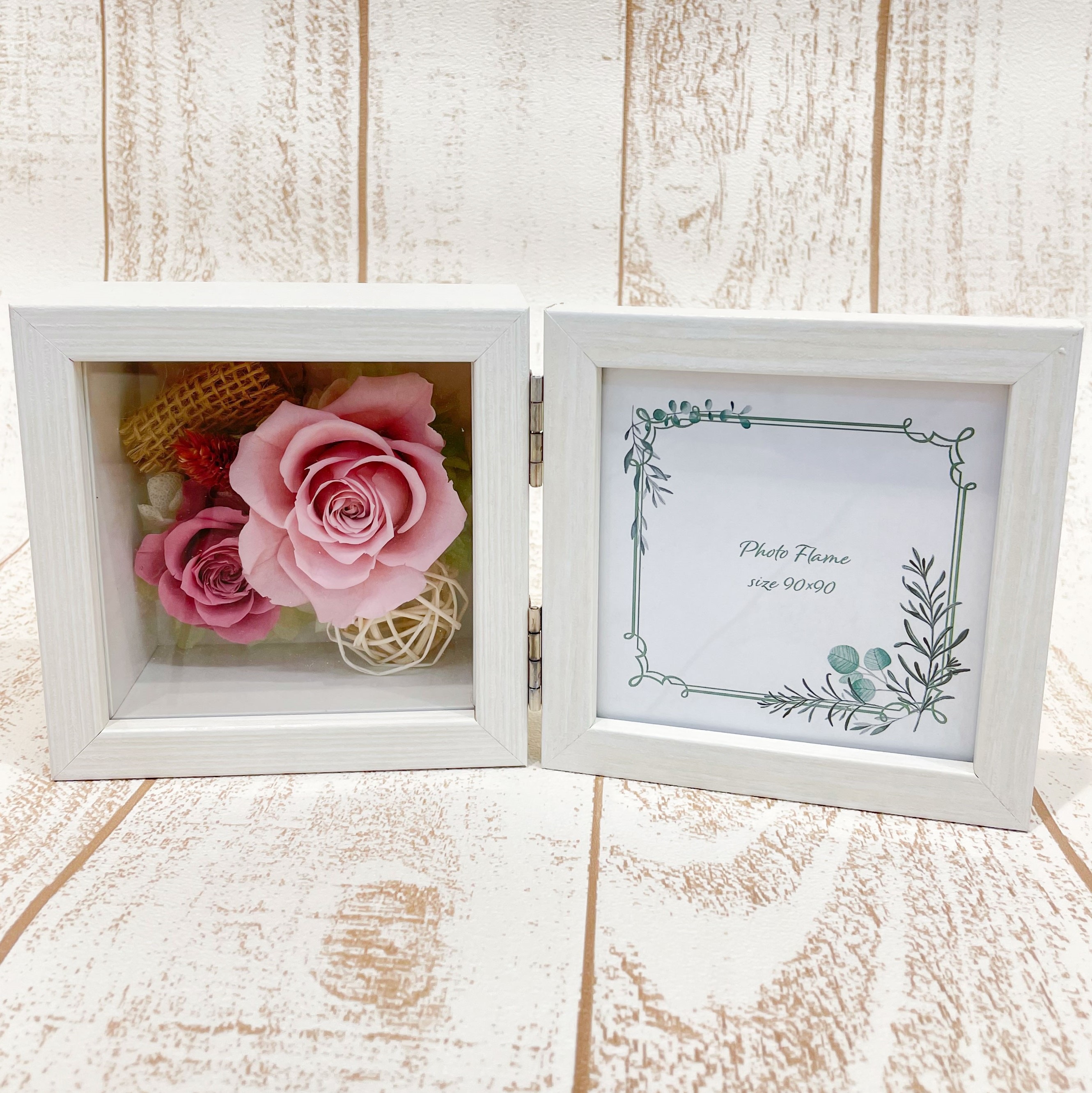 片側には9㎝×9㎝の写真やカードを挟むことができます。ギフトにはご自身でメッセージや写真をいれて贈ると喜ばれます。