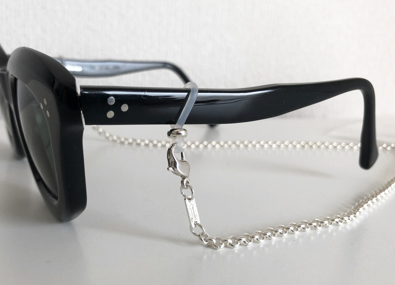 現在出回っているメガネ&マスクチェーンはカジュアルなものが多く、しっかりしたジュエリー感覚のものがない為、シルバー925で企画し商品化しました。