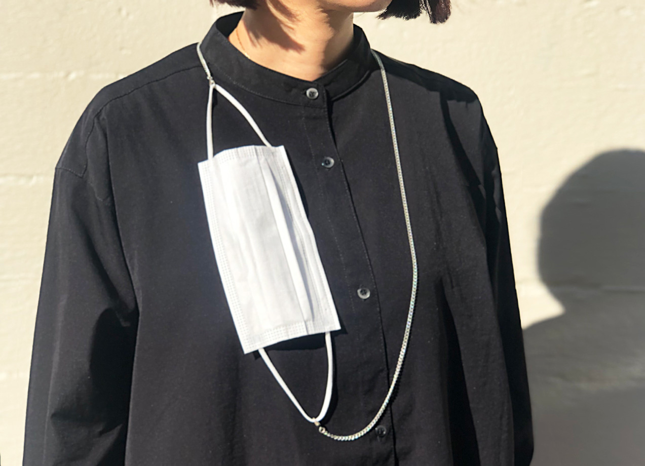 外出時、お茶やランチ等でちょっとマスクを外したい時に置き場に困ることから開発しました。アクセサリーとしてもチェーンがゆらゆら揺れてファッションのポイントとなり、素敵です。シリコンパーツを外して使用します。