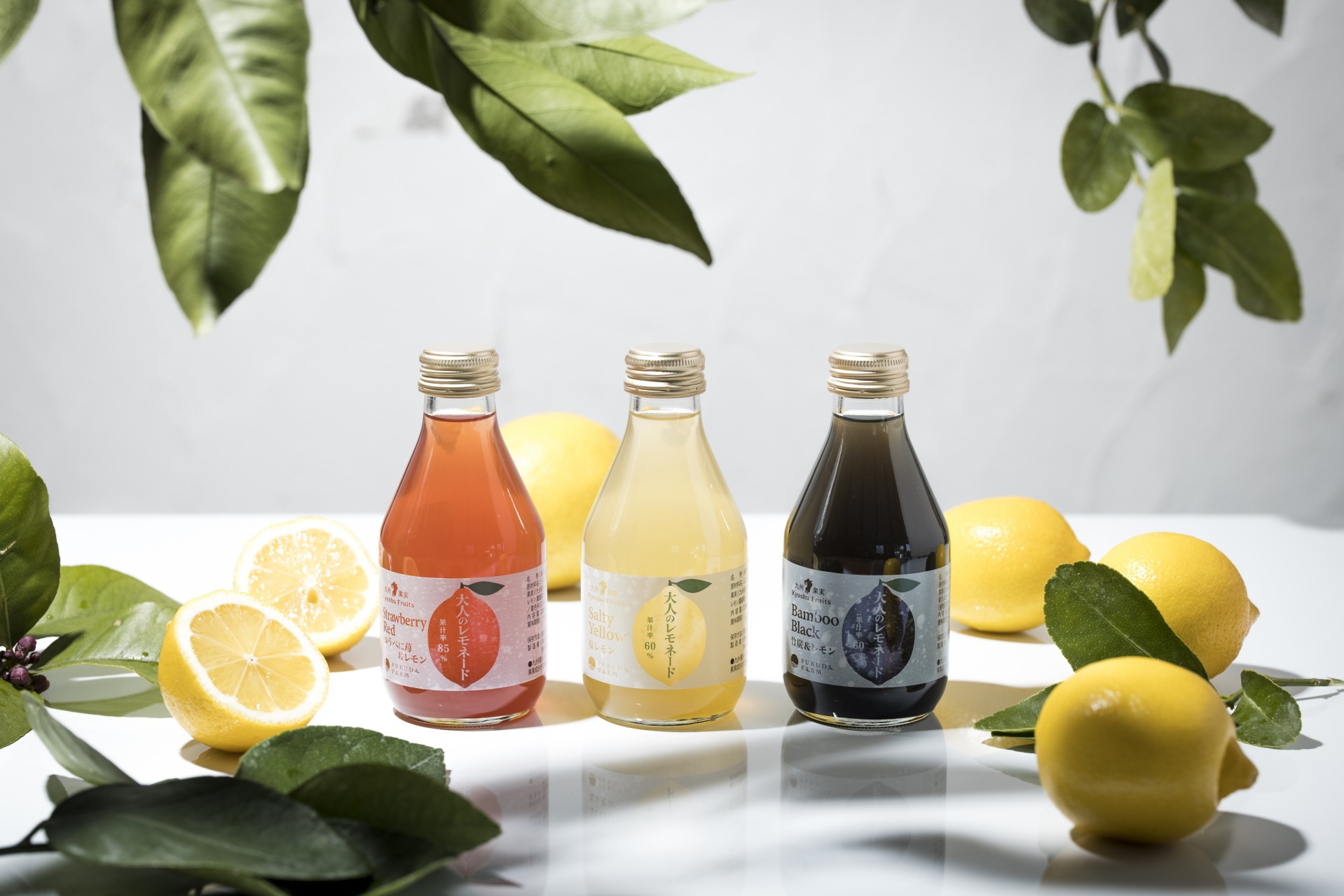 夏向けの爽やかな味わいが楽しめるカクテル感覚の大人味のレモネードです。芦北産の塩を使った「塩レモン」、熊本産のゆうべに苺を使った「苺&レモン」、国産の竹炭とジンにも使われるジュニパーベリーをフレーバーに使用した「竹炭&レモン」の3種類をお届け!