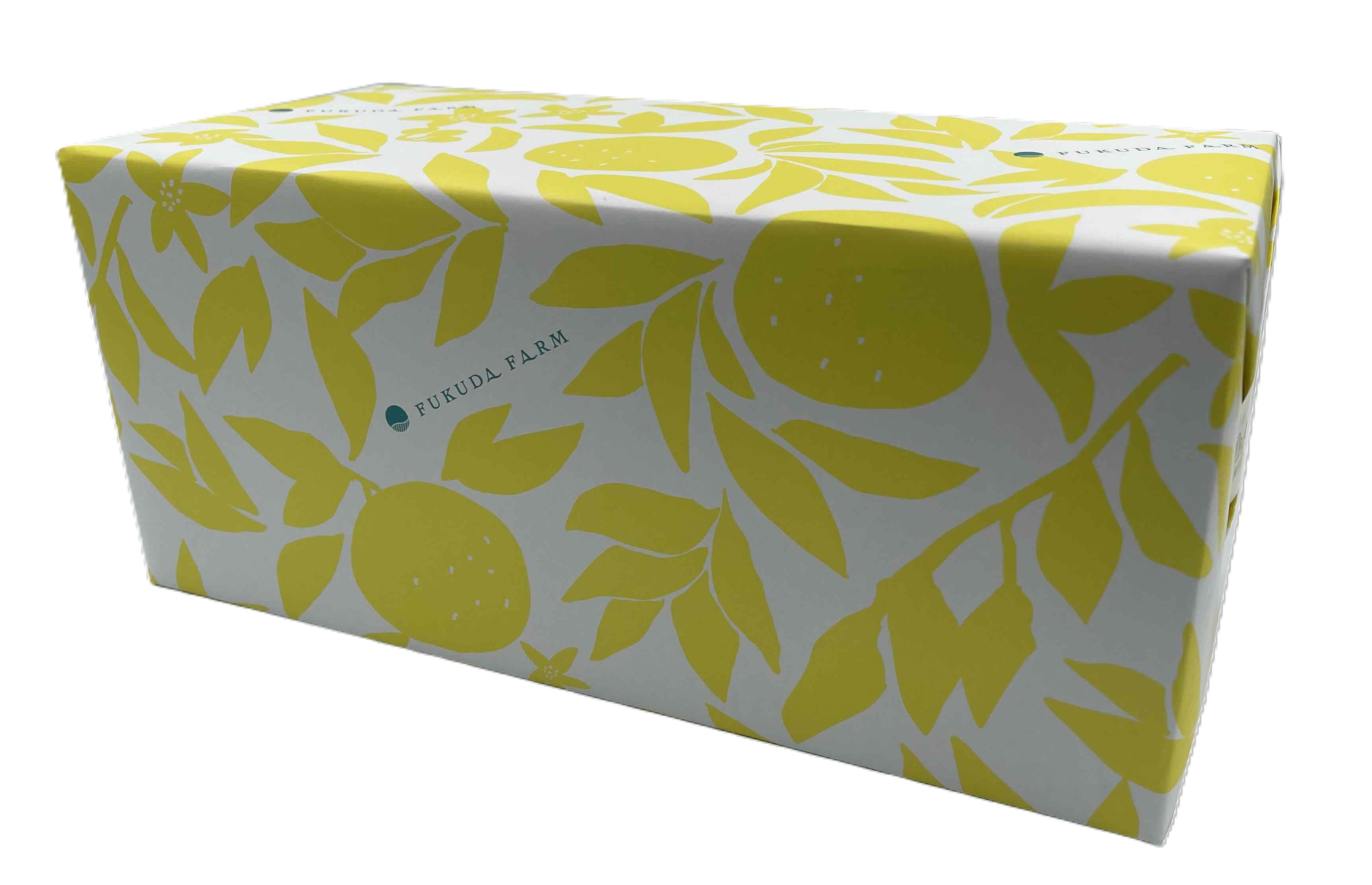 箱に梱包し、福田農場オリジナル包装紙でお包みしてお届けいたします。