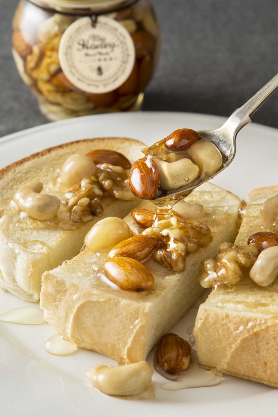 大口注文・法人のお問い合わせはこちらナッツと蜂蜜の栄養が一度に摂れる「MYHONEY」のナッツの蜂蜜漬けは、FOODEX JAPAN美食女子グランプリにて金賞を受賞したスーパーフード。創業者がたまたまもらったお土産から着想を得て、自宅のキッチンで作り始めたのがきっかけで誕生しました。