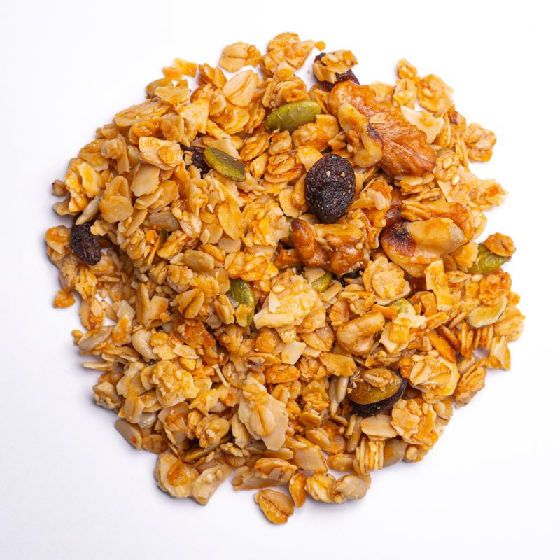 | 原材料 | 有機オートミール、蜂蜜、生アーモンドスライス、くるみ、米油、有機レーズン、ひまわりの種、かぼちゃの種、いりごま、タピオカ粉 |