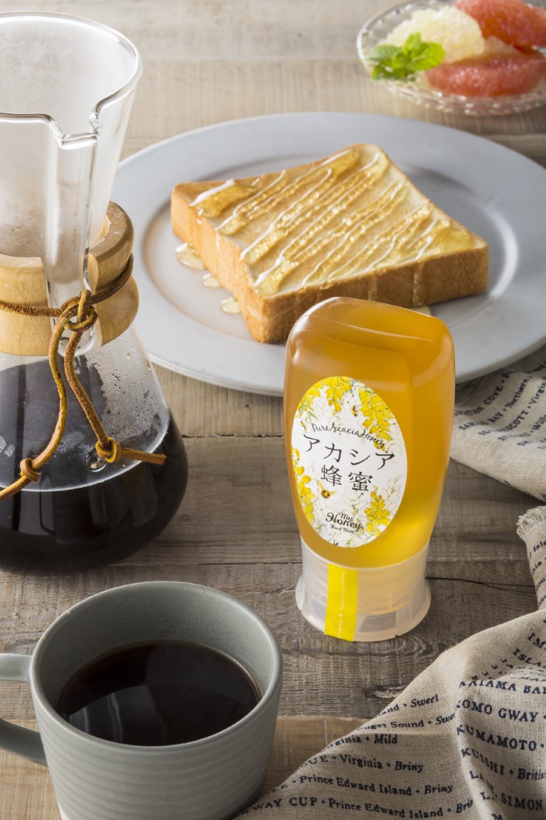 パンに塗ったり、紅茶に入れたり。砂糖に比べてカロリーが少ないためお料理にもオススメです。クセのない味わいが珍しいアカシアハニーは幅広く活躍します。