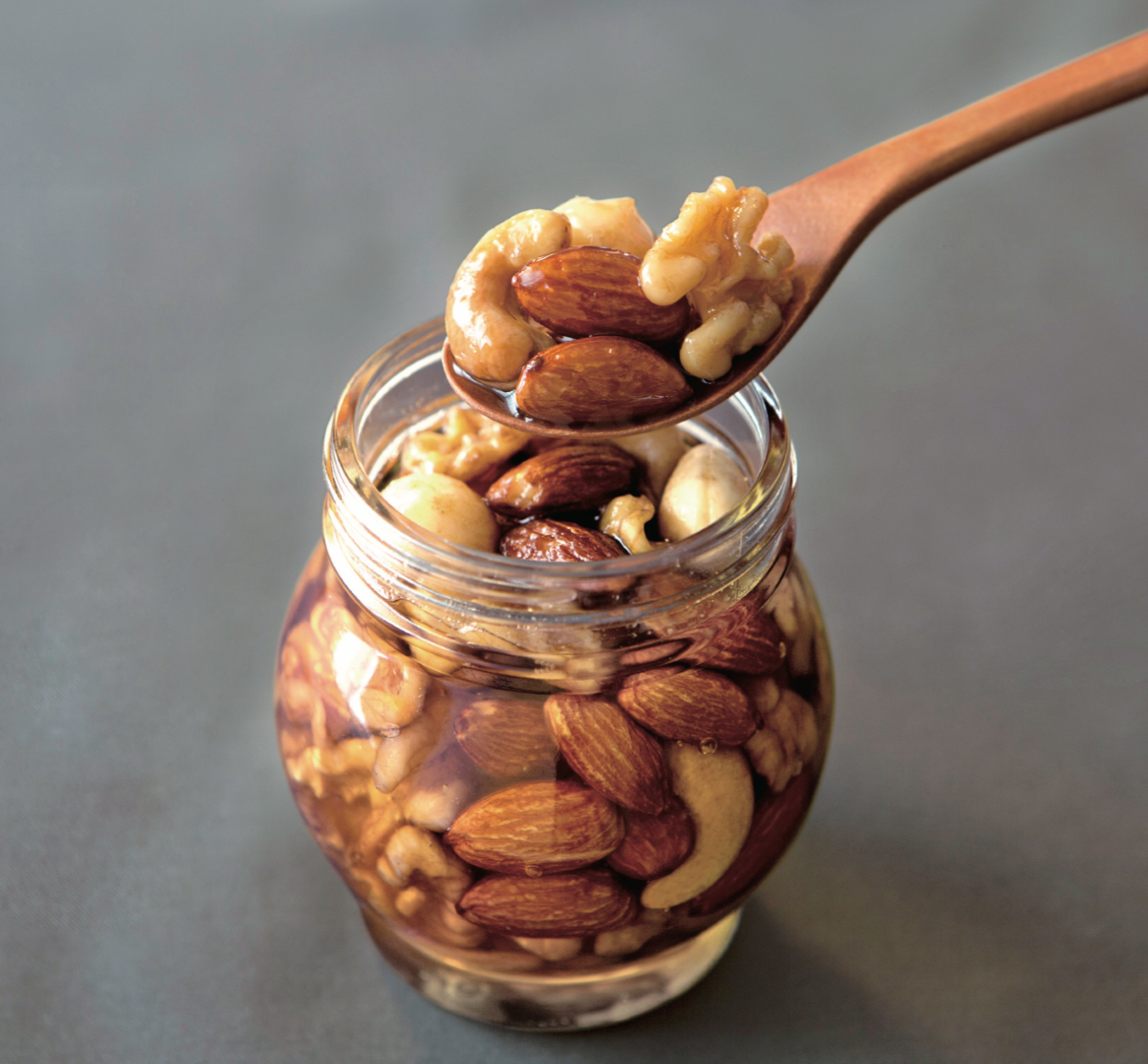 ミネラル豊富なナッツは、気になる年齢や美容の面でも注目されており、今やヘルシーな食材として広く知られるようになりました。そんな栄養満点のナッツたちを非加熱のハンガリー産低GIのアカシアハニーに漬け込みました。