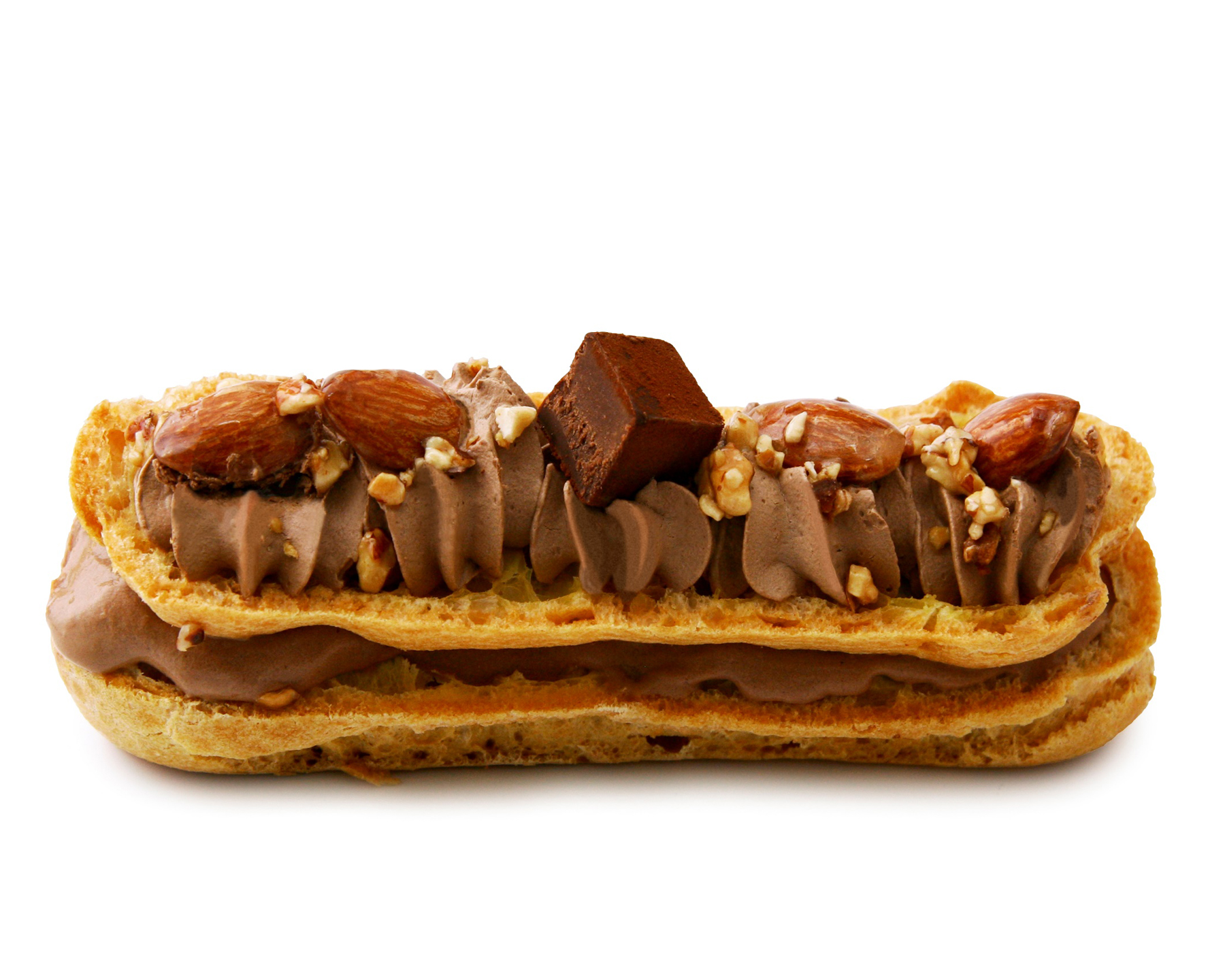 濃厚なチョコアイスにチョコホイップ。トッピングにはアーモンドに生チョコレート、チョコレート好きの方にオススメしたいシューアイスです。