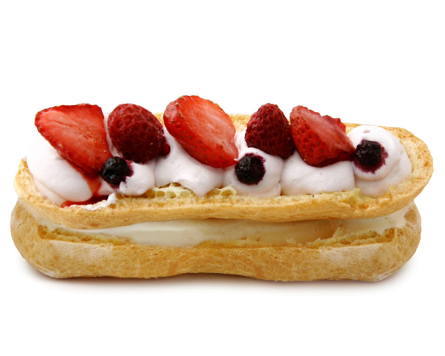 コクのあるバニラアイスクリームに専門店ならではのこだわりのシュー皮を重ね、苺とブルーベリー、ラズベリーをトッピングしました。