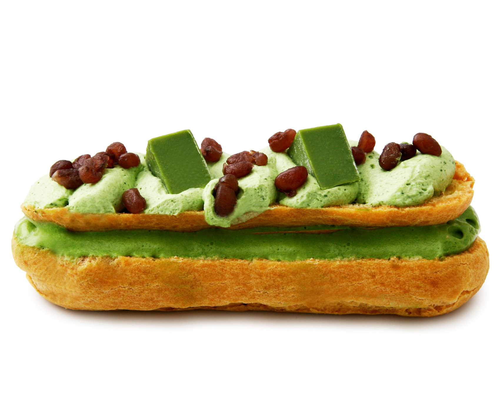 香り高い宇治抹茶使用のアイスクリームに抹茶クリーム。さらに抹茶チョコレートと小豆をトッピングし、和テイストのシューアイスに仕上げました。