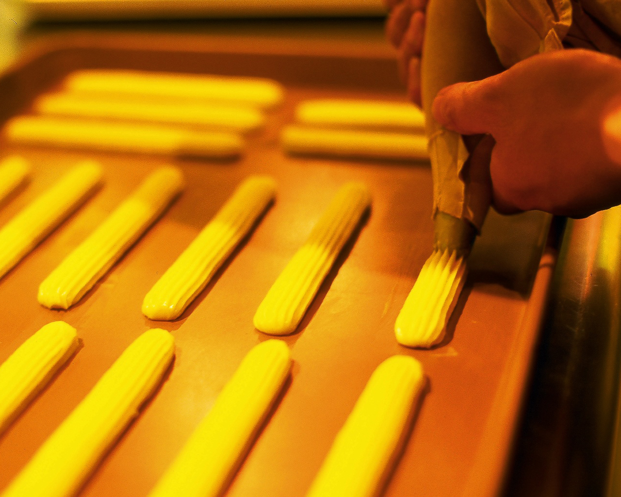 このシューアイスのデコレーションは、全て手作業で行っています。特に上のクリームは各フレーバーごとに全て絞り方を変えているというこだわりよう。機械生産では難しいこの商品は、バラエティ感、見た目の鮮やかさ、華やかさにおいて今までにはない、まさにプレミアムなシューアイスケーキと言えます。