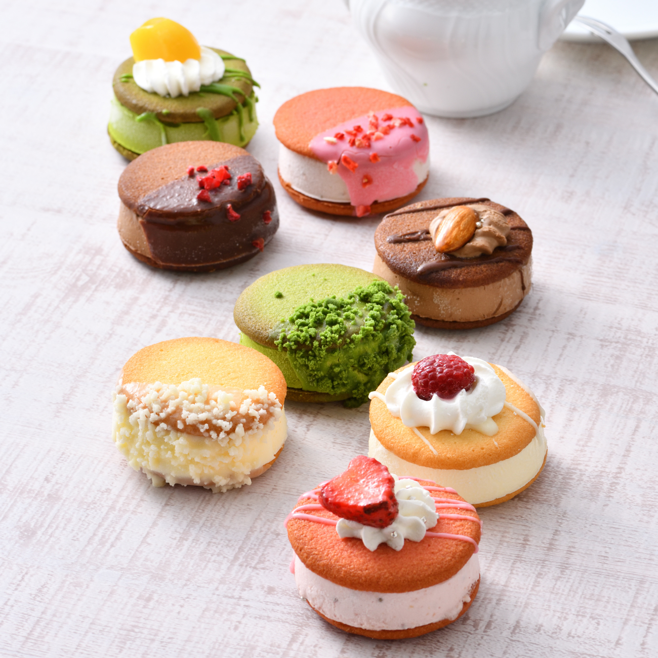 女性がギフトで選ぶスイーツのカテゴリーで上位に位置する、美味しくて見た目の華やかなお菓子。どこにでもあるようなありきたりのものではなく、「ここでしか買えない」そんな想いから生まれたのが、この可愛らしい見た目のサンドアイスです。