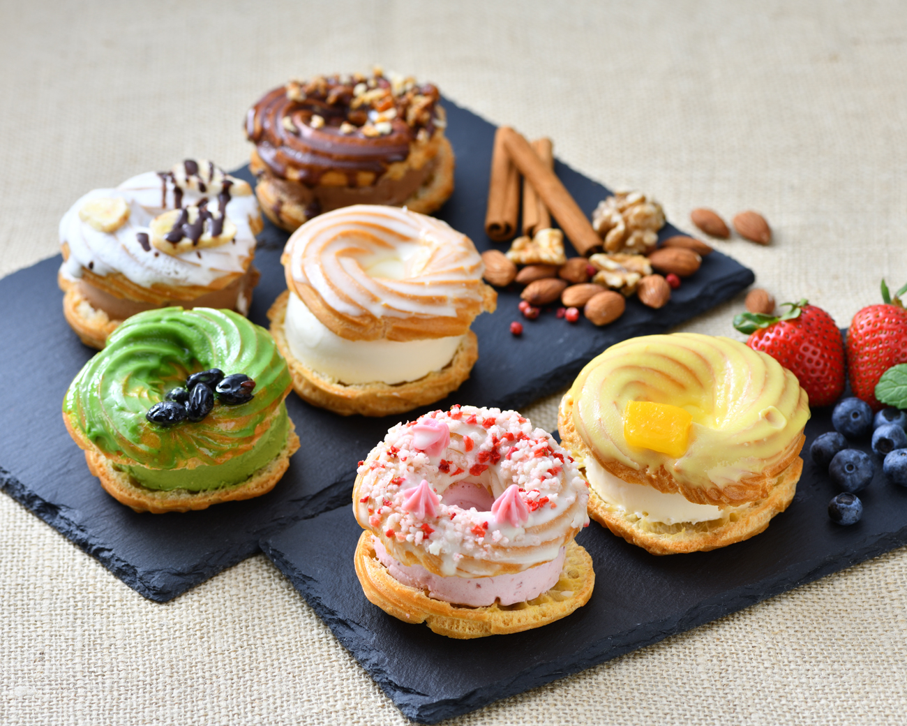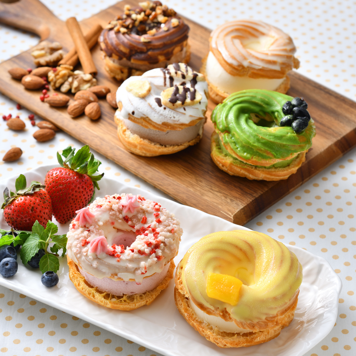 北海道生乳使用の濃厚なバニラアイスクリームを可愛らしいドーナツ型のシュー皮でサンドしました。
