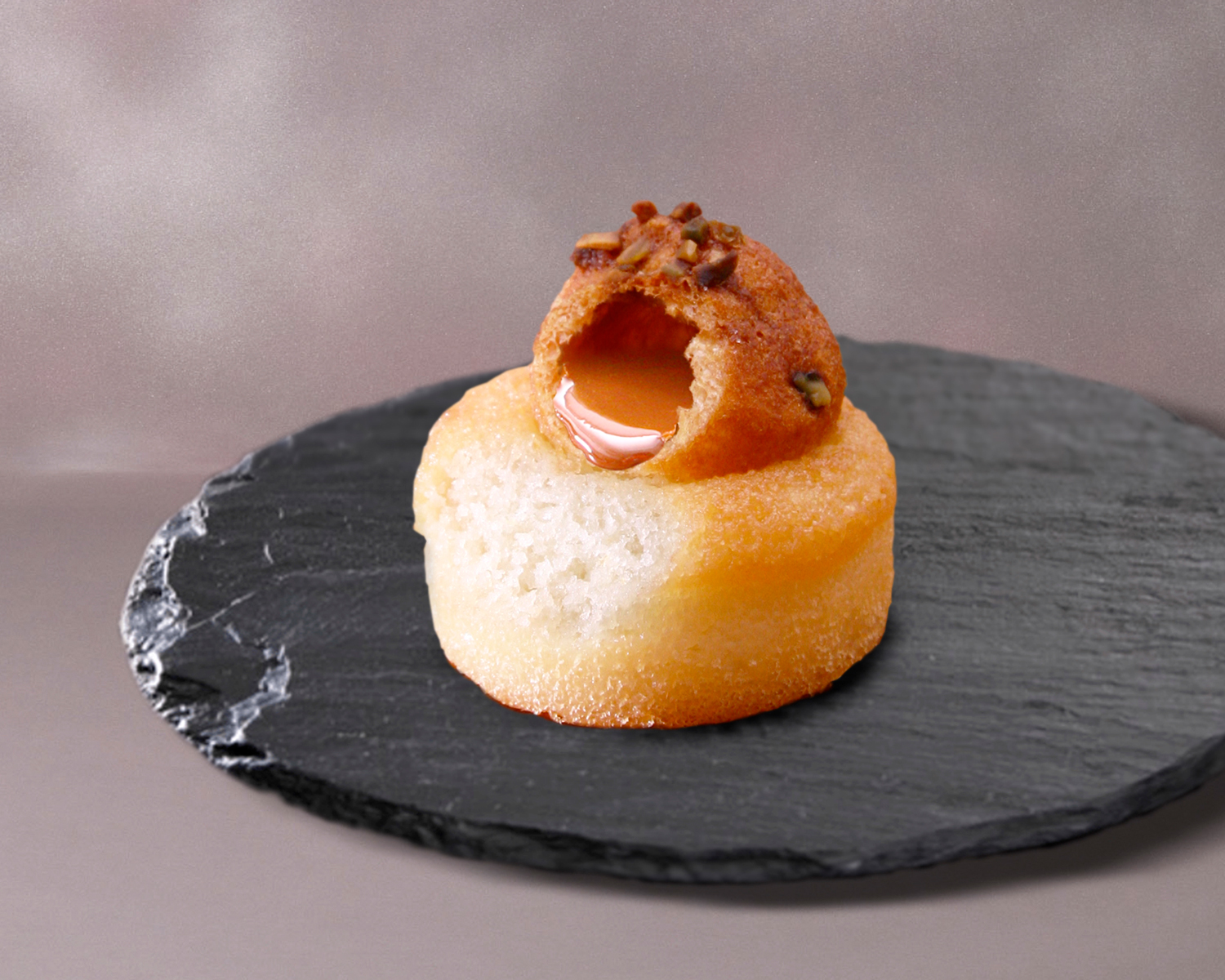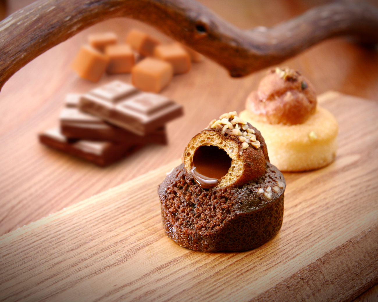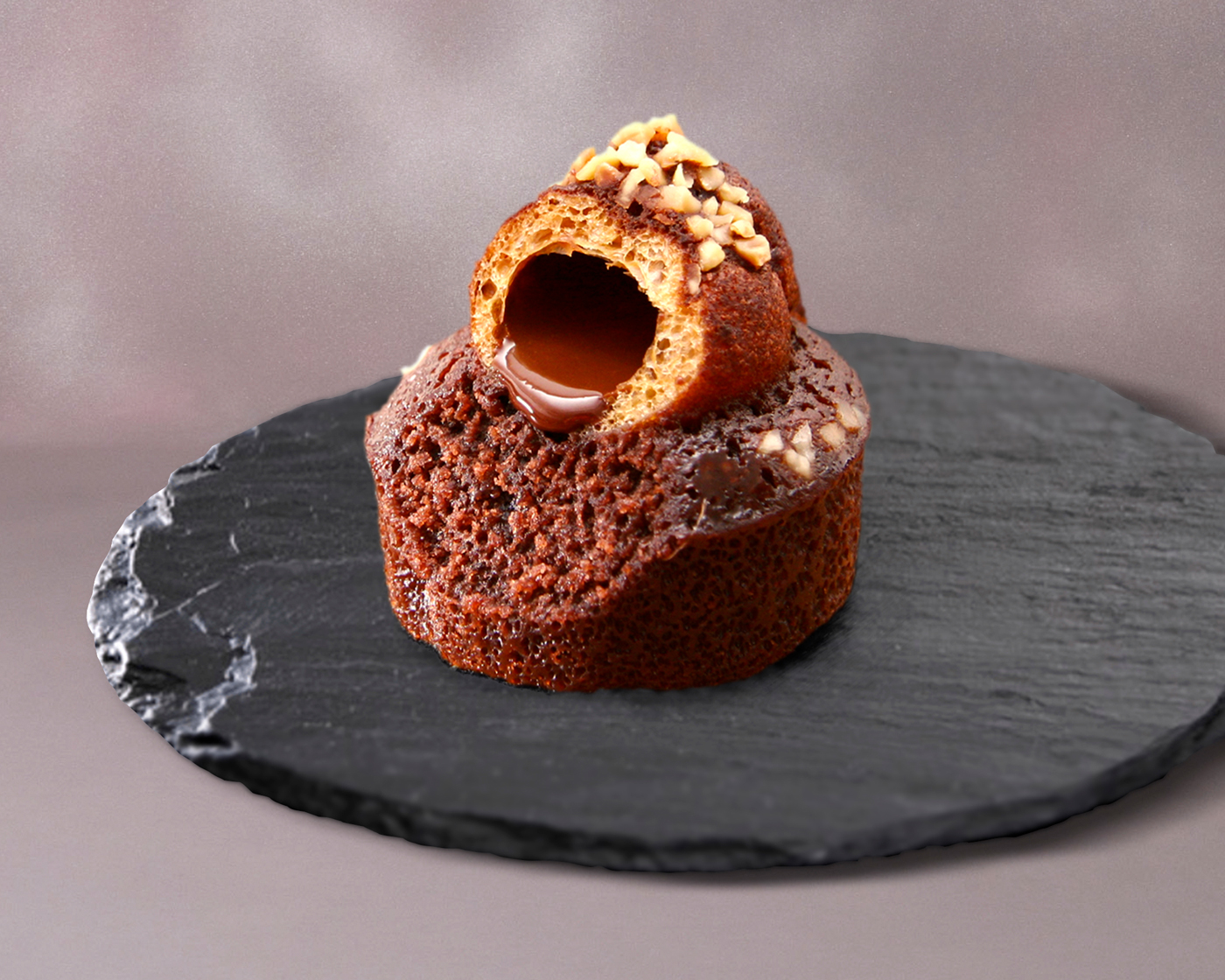 ガナッシュクリームがたっぷり入ったプチシューとジェノワーズを重ね合わせました。個性豊かな味をお楽しみください。