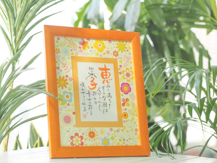 大口注文・法人のお問い合わせはこちら名前を織り込んだ作品を作家が手書きする、名前詩の【NAME IN POEM】です。 あらゆるお祝いごとに最適な、 心温まる世界にひとつの贈り物として注目を集めています。 お誕生日や還暦祝いなどのお祝いシーン、 そして父の日や母の日など各種記念日にも。 ネームインポエムは贈るシーンを選ばないギフトです。