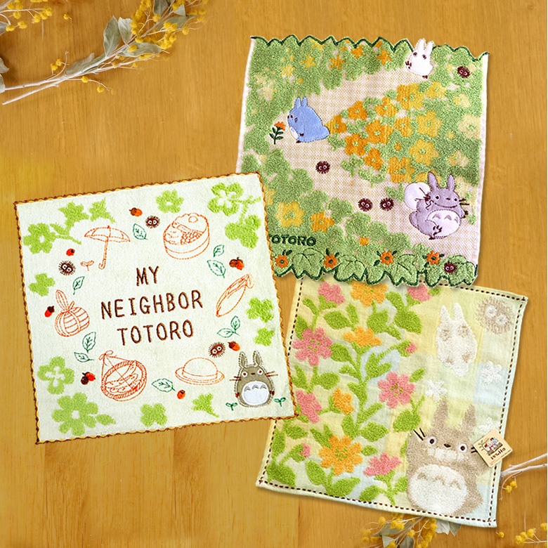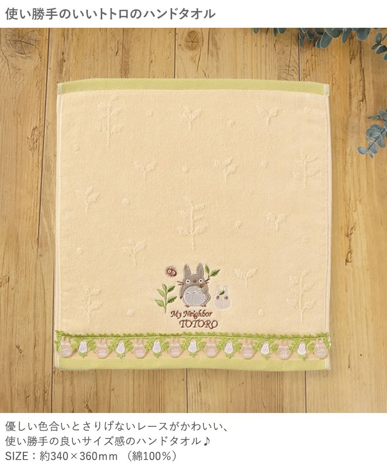 トトロのアップリケや刺繍がとっても可愛らしい 使いやすいサイズのミニタオル。 ただいまこちらのデザインでお届けします。 【サイズ】約25×25cm【素材】綿100%