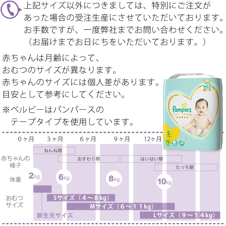もらって嬉しい上質な「パンパースのはじめての肌へのいちばん」シリーズのSサイズを25枚使用しています。弱酸性の吸収層で赤ちゃんのデリケートな肌を守ります。コットンのようなやわらかさ、穴あきメッシュと360℃の通気性の良さ、最大10時間の吸収力が魅力のおむつです。