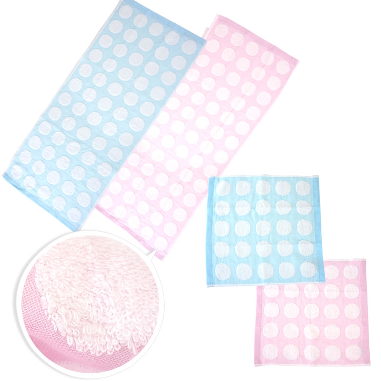 おむつケーキを包むタオルには、キュートなパステルカラーの今治産ガーゼタオルを使用しています。ハンドタオルとフェイスタオルは無撚糸で作られているので、柔らかでデリケートな赤ちゃんの肌にも安心してお使いいただけます。ふわふわとしたボリュームと吸水性があり実用的!