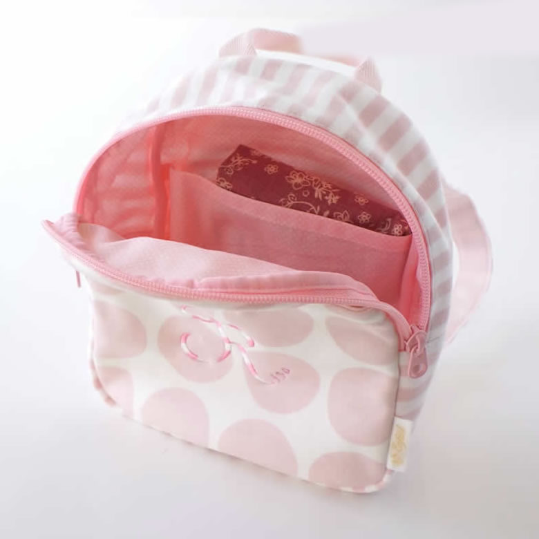 ベビーの可愛らしさを引き立てる、上品で飽きのこないボーダー&ドット柄が魅力です。品質にもこだわり、ベルビーアンファンオリジナルのやわらかで優しいコットンを使用しています! 可愛いだけじゃない!内側には、使い勝手の良いポケットがあり機能的です。リュックのショルダーは長さが調節できますので、成長に合わせて長くご愛用頂けます。 ※ショルダー長さ:25cm~42cm