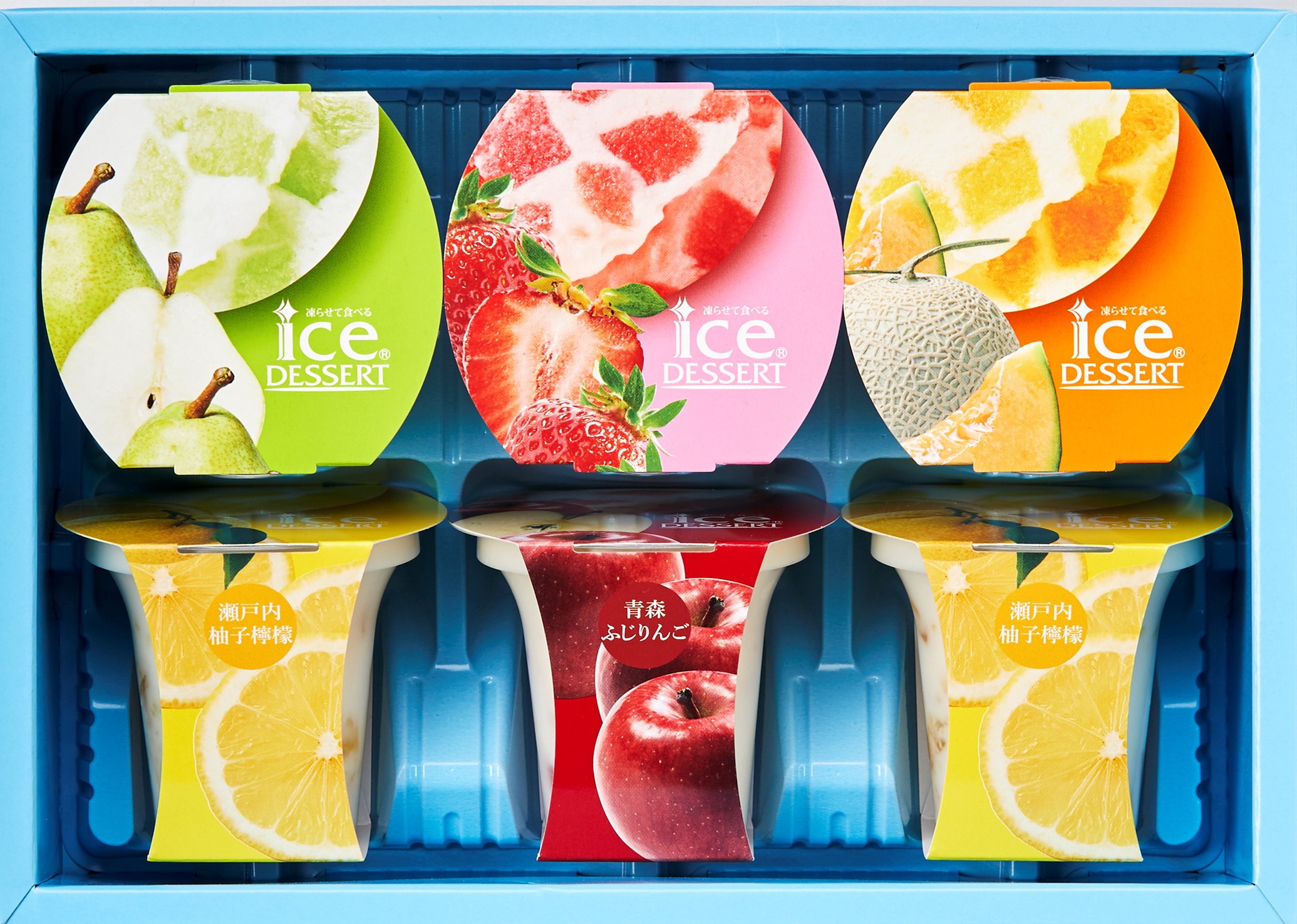 大口注文・法人のお問い合わせはこちら産地を厳選した拘りの国産フルーツを使用したシャーベットと、 クリーミーなヨーグルトアイスが織り成す美味しさが楽しめる、夏にぴったりとデザートギフトです。