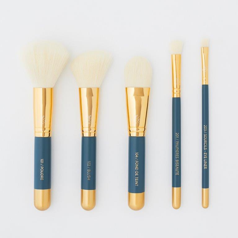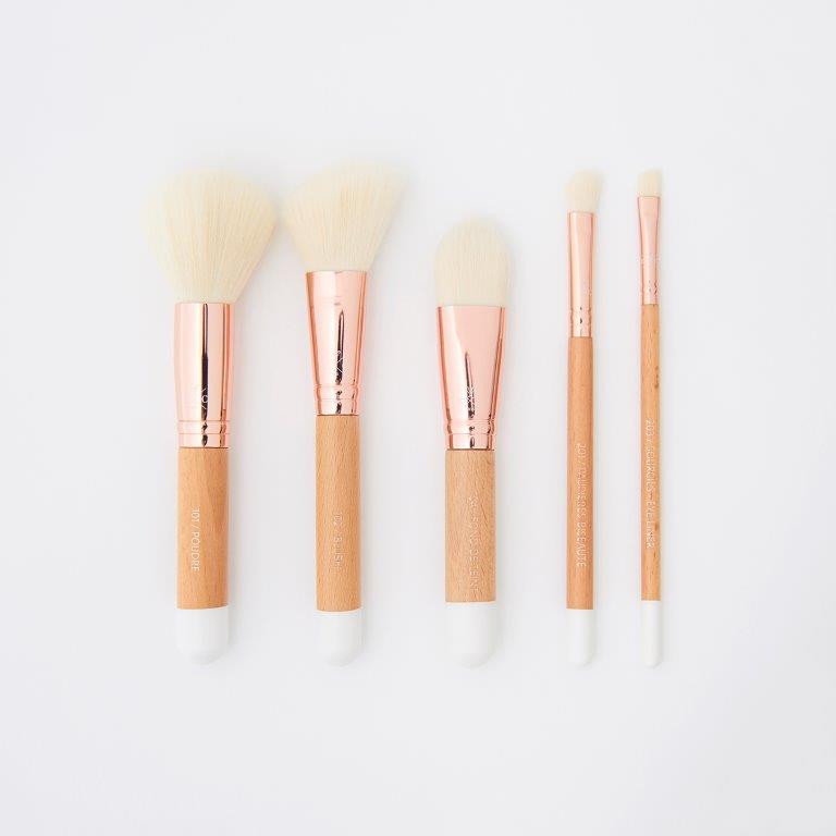 ファンデーションブラシ、ブラッシュブラシなど人気のメイクブラシ5種がセットになったコフレの登場です!ドレッサーに置くだけでインテリアとしてアクセントになるようにデザインしました。素敵なボックスに入り、贈り物にも喜ばれます。雰囲気の異なる2色からお選びください。