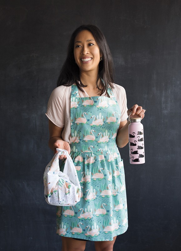 テキスタイル、キッチンウエアを同じデザインで揃えたいというニーズから、エプロン、マグカップ、ポーチ、トートバックなどが開発されました。エプロンは毎年新作が発表される人気商品です。