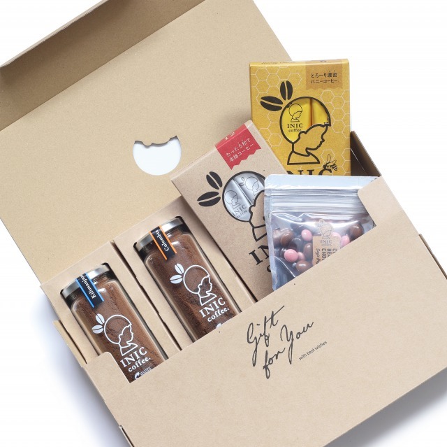 「いま美味しいコーヒーが飲みたい!」に応えるドリッブド・コーヒーパウダー「INIC coffee(イニック・コーヒー)」。こちらのセットでは、「INIC coffee」の人気の4種のコーヒーを味わうことができます。コーヒーとの相性の良いビーンズチョコレートも付いた贅沢なギフトです。