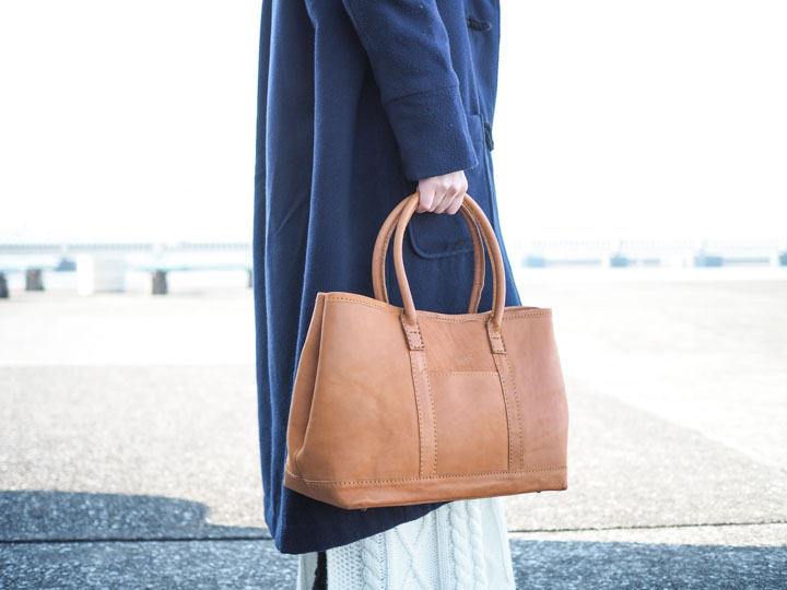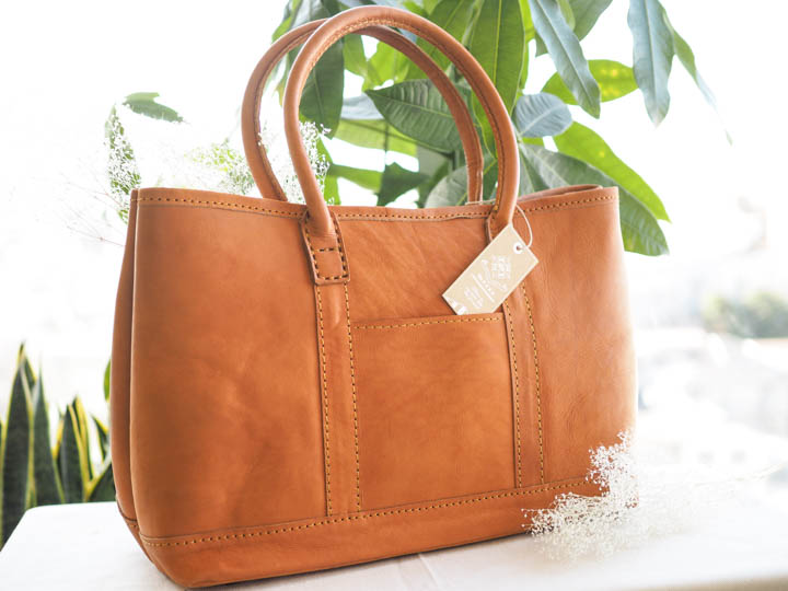 天然の牛革を使用したシンプルで洗練されたトートバッグです。天然の牛革を使用しているので、使うほどに味わいが増し、違った皮の表情をお楽しみいただけます。淡いキャメルの色が上品で、大人の印象を与えてくれます。普段使いはもちろん、フォーマルな場でもお使いいただけます。