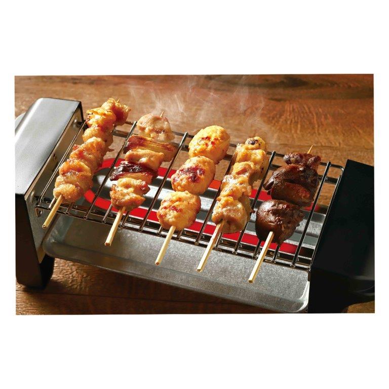 焼き鳥網は炭火焼のようにじっくり焼いてとってもジューシーに。 余分な油を落とすので、気になるカロリーもカット。 美味しくてヘルシーな焼き上がりです。落ちた油は下段トレイへ溜まります。
