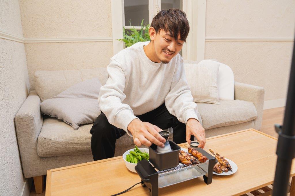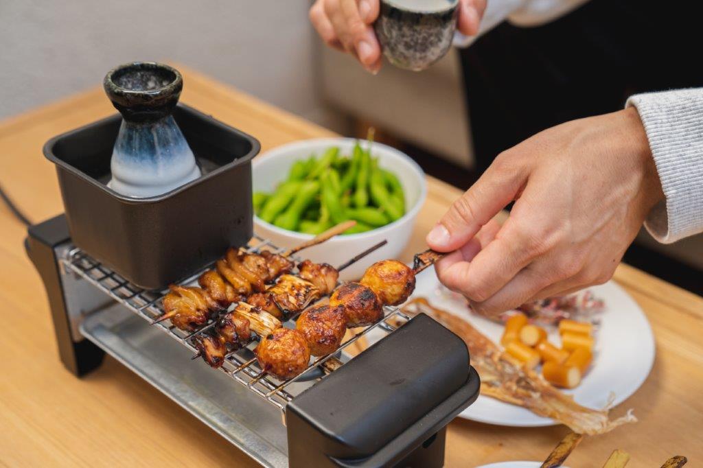 火を使わず、電源スイッチを押すだけの簡単操作。安心して卓上でアツアツの肴を楽しめます。