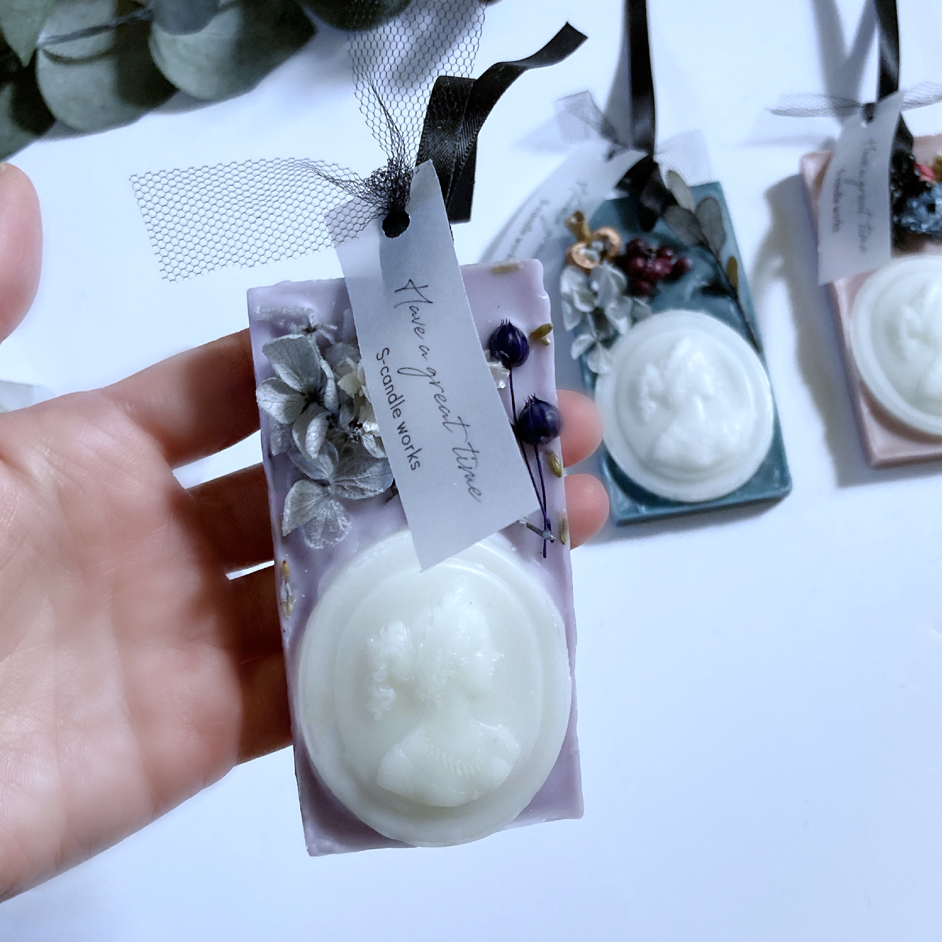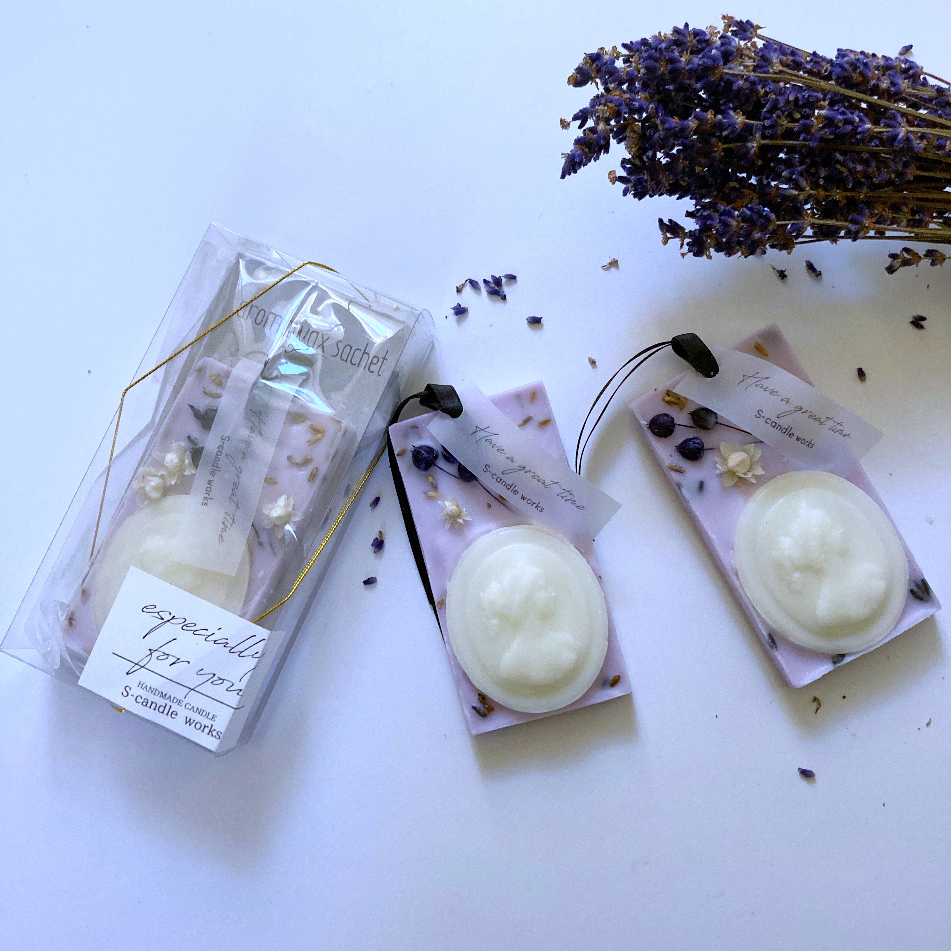 大口注文・法人のお問い合わせはこちら蜜蝋で作ったカメオがポイントのシックなデザインのサシェ。 アロマオイルで香りづけたワックスに、ドライフラワーホームフレグランスです。 ご自分用、大切な人へのプレゼントにもオススメです。