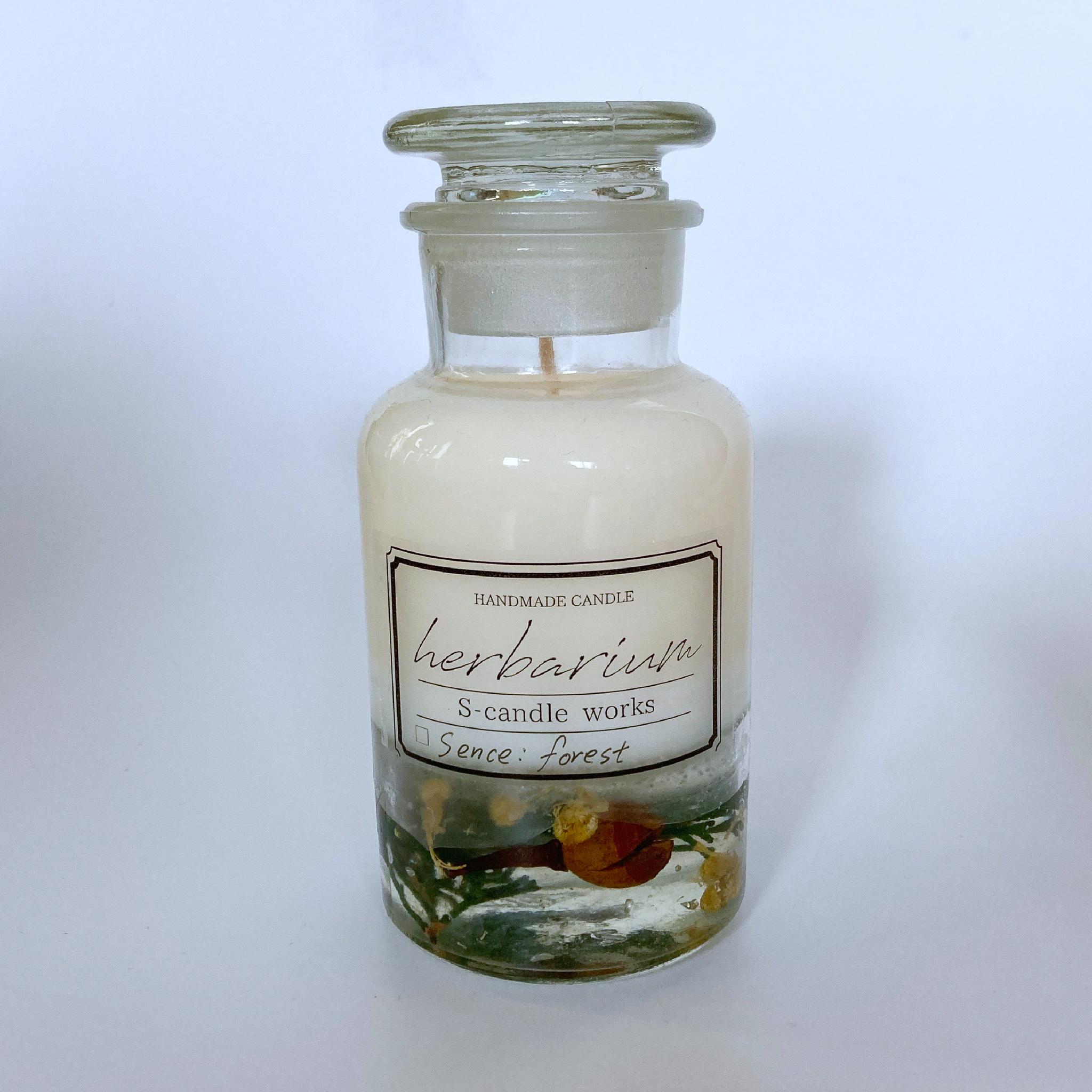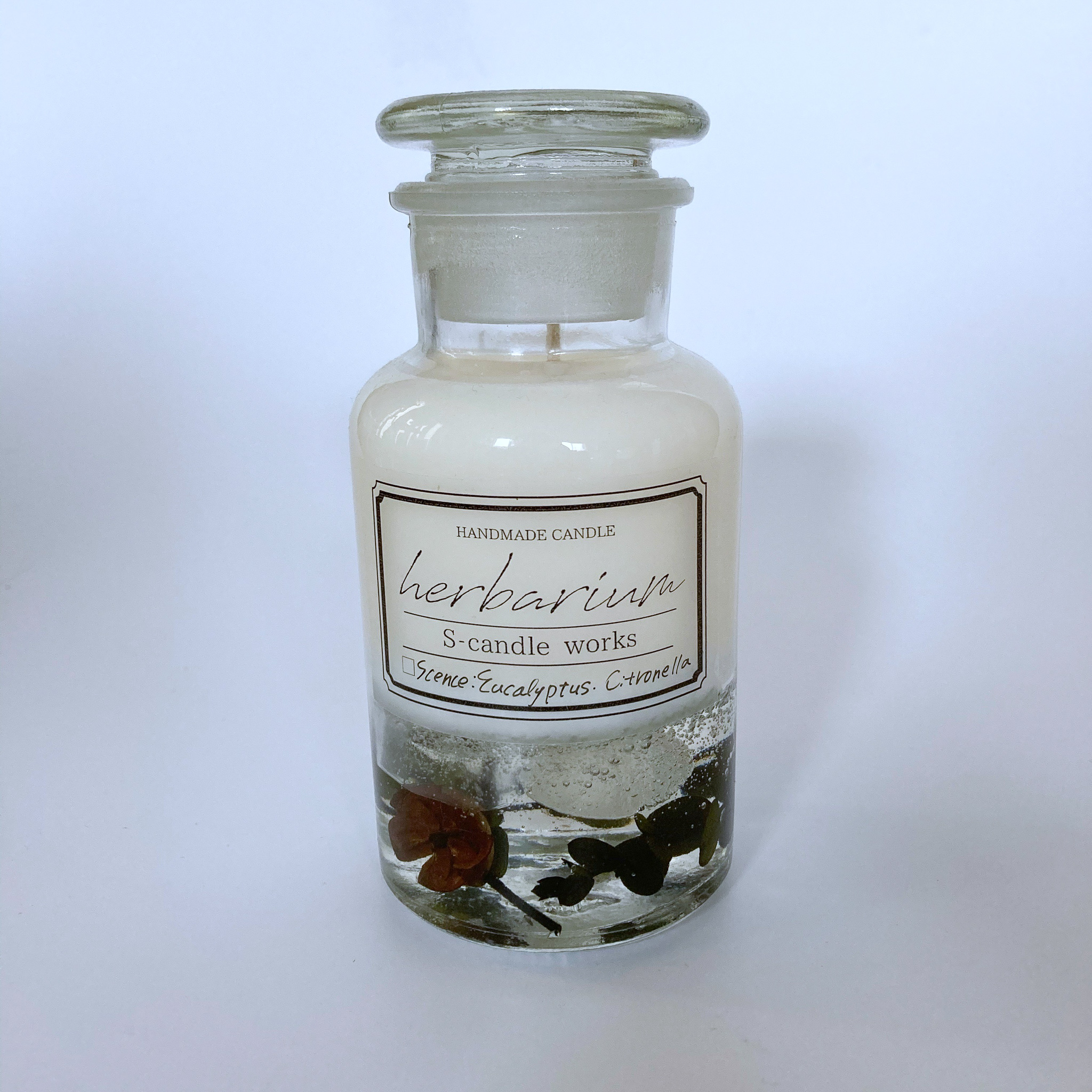 大口注文・法人のお問い合わせはこちら火が灯る部分には香りのついたソイワックスを使用しています。 ソイワックスならではの優しい灯りと香りを楽しめます。 下部はドライフラワー、プリザーブドフラワーをジェルワックスで閉じ込めたハーバリウムになっています。 見た目も香りも楽しんでいただけるデザインです。