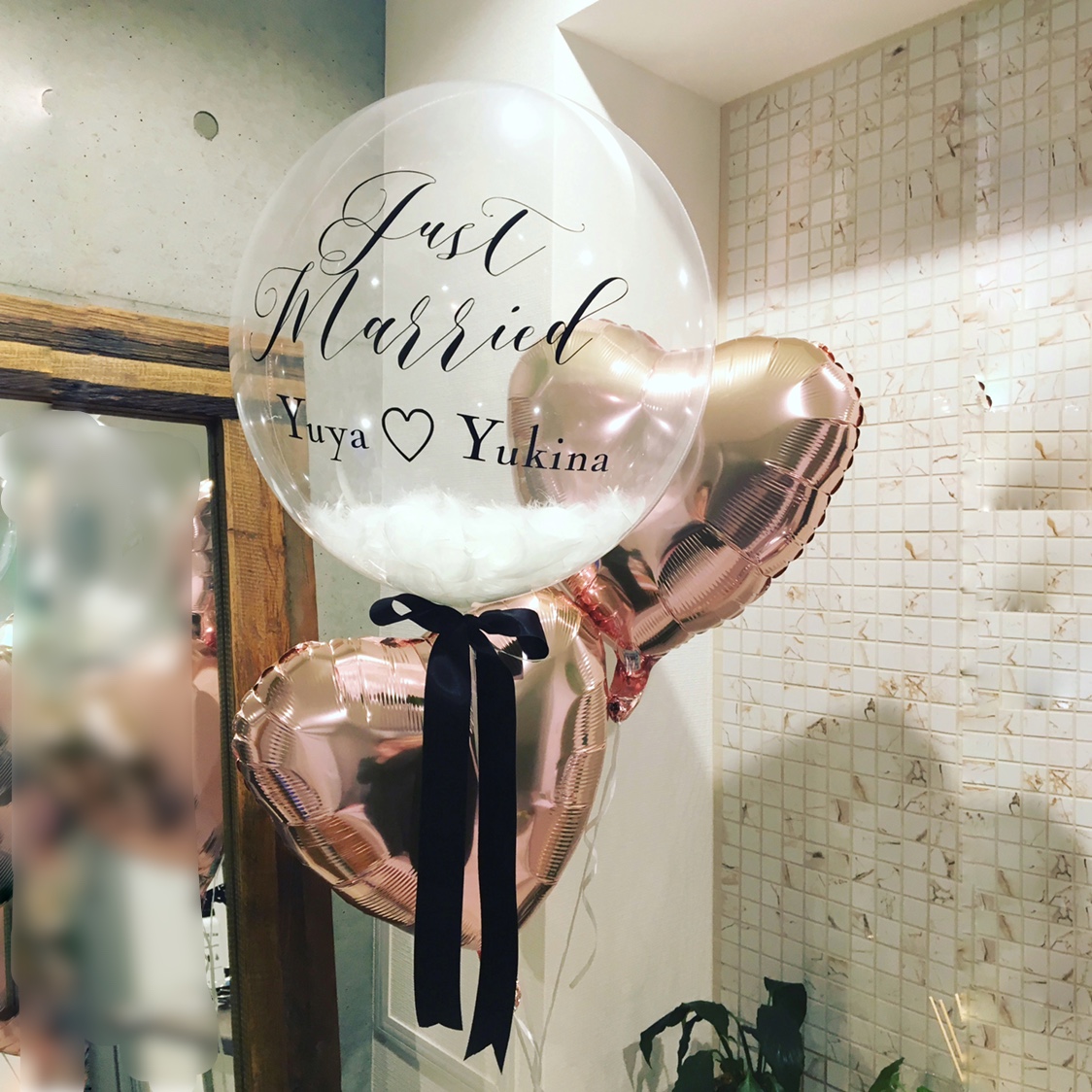 20代、30代前半のモノトーンがお好きな方に好まれます。ウエディング当日のバルーン電報として贈られるのも素敵ですが、こちらのバルーンはぜひ新郎または新婦ご本人がお相手にサプライズに贈っていただくのにぴったりなデザインだと思います。入籍当日など、二人だけで祝うひとときに添えてください。