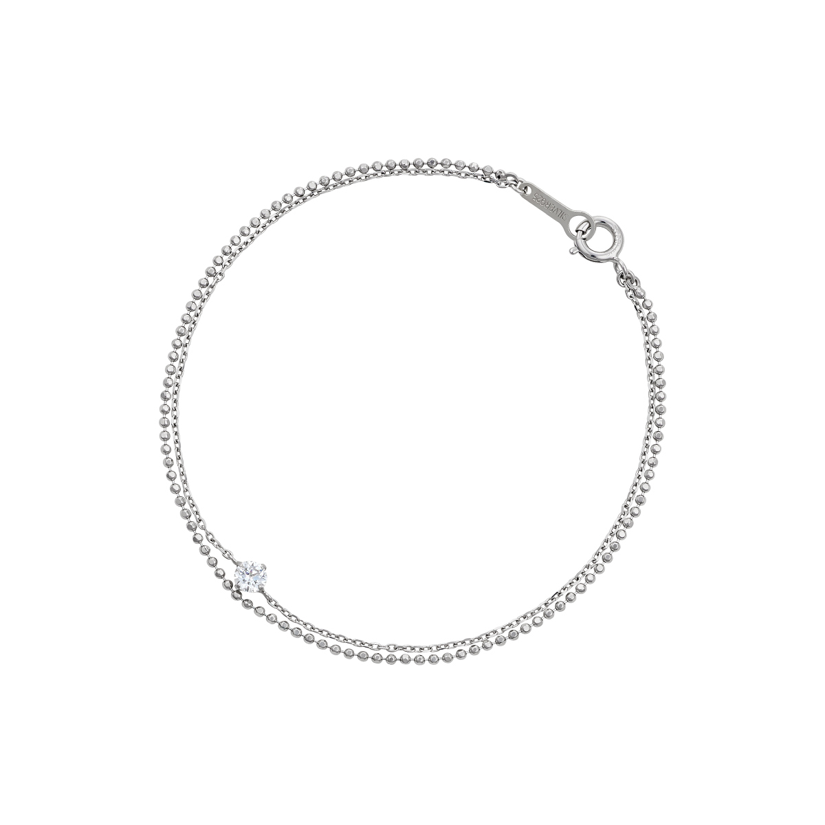 きらめくキュービックジルコニアを1粒あしらった、2連のブレスレット。 シルバーカラーの上品な色合いが、手元をより美しく演出。異なるチェーンの組み合わせが、動くたびに光を受けてきらりときらめき、シンプルながらも華やかな印象に。