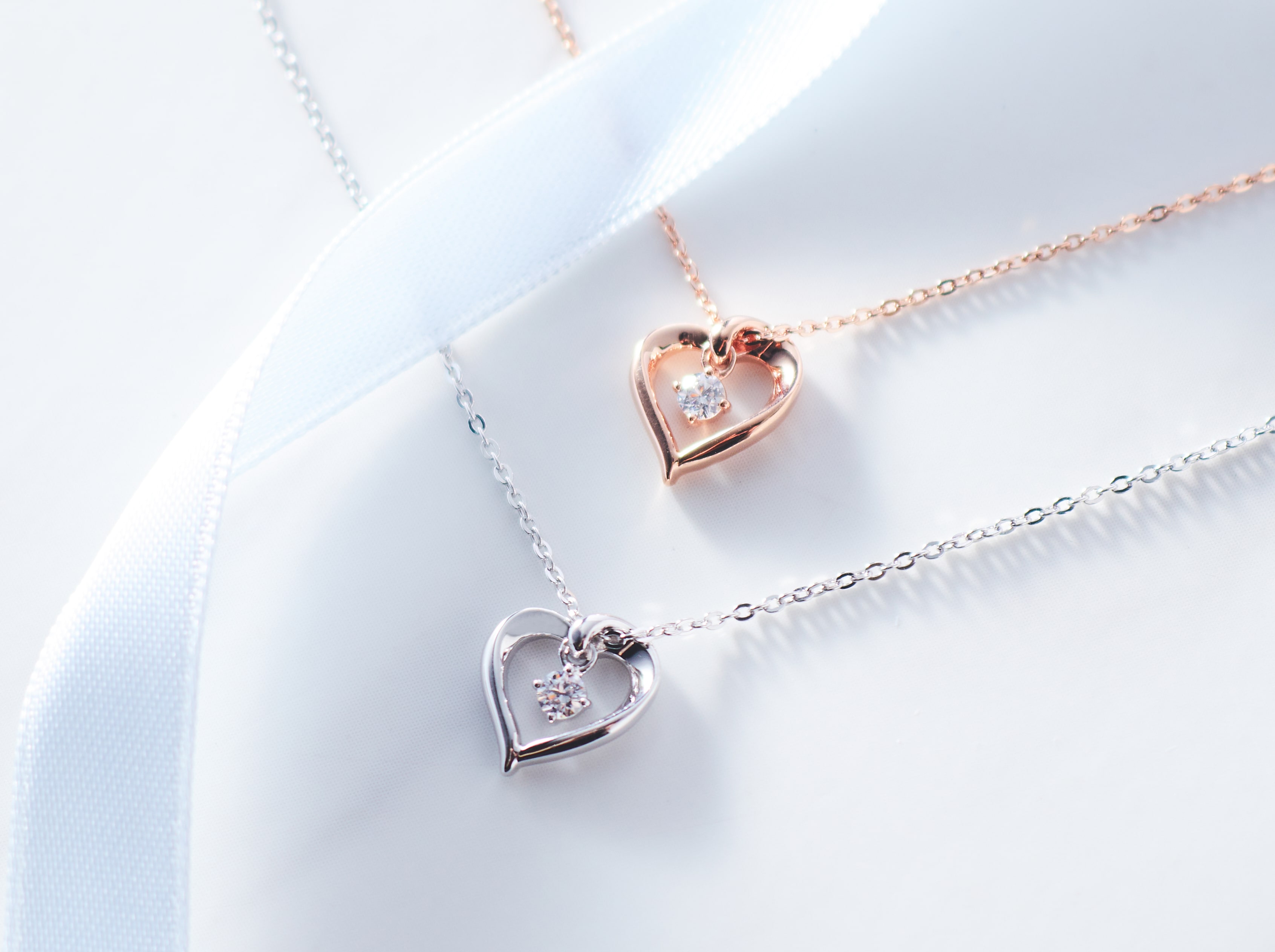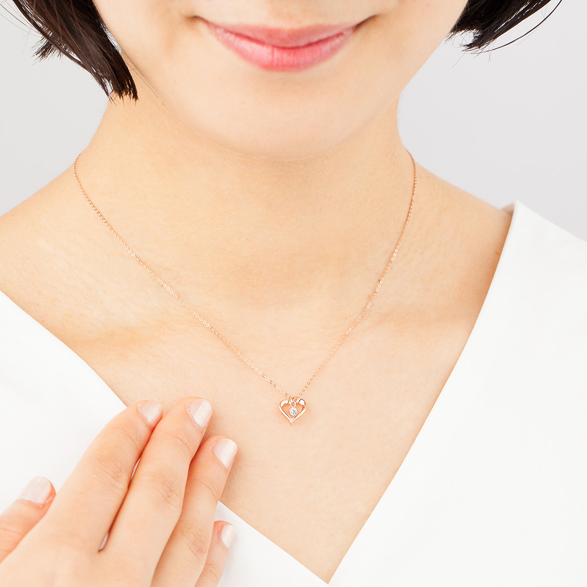 可愛らしさを演出するハートモチーフ、中央で揺れるキュービックジルコニア。
