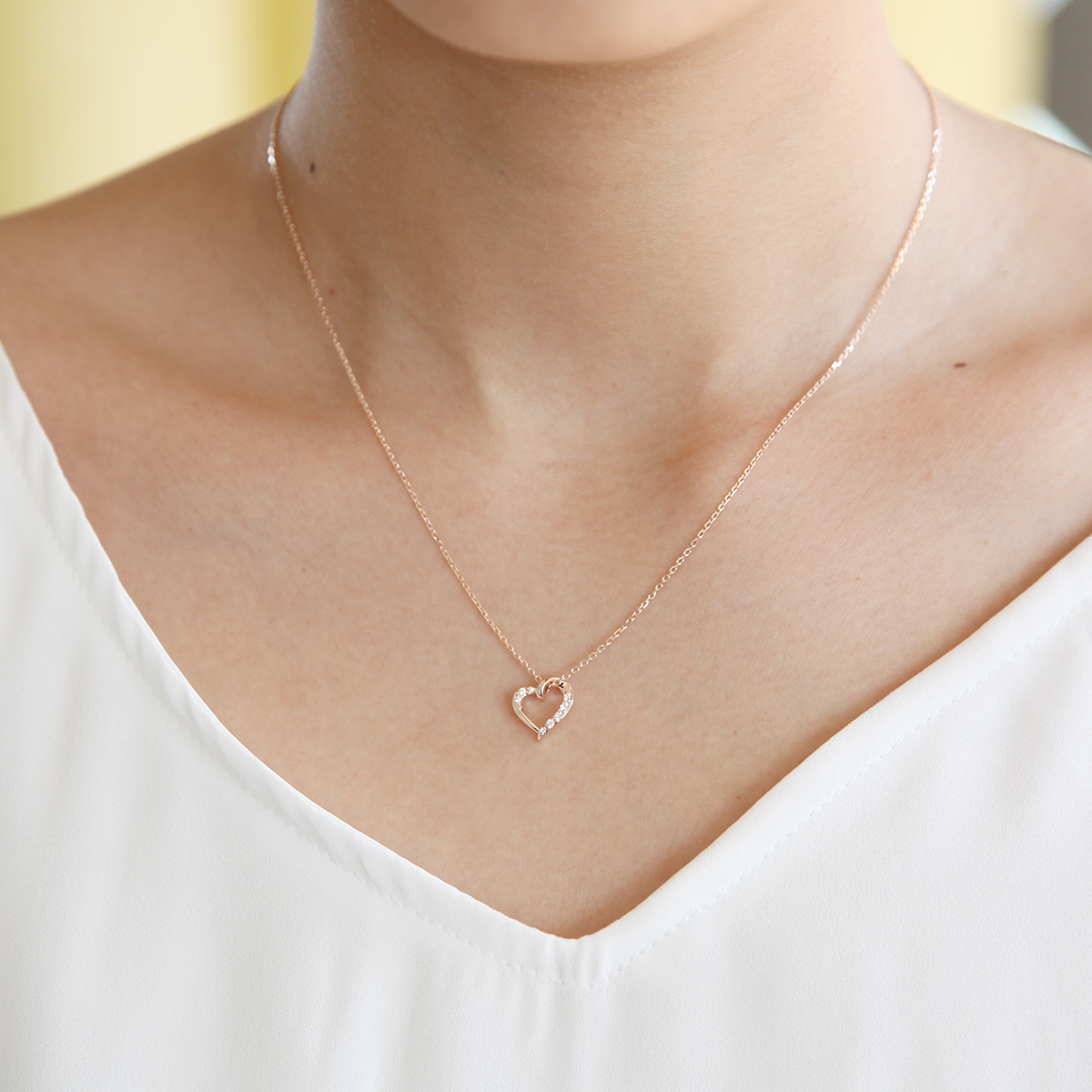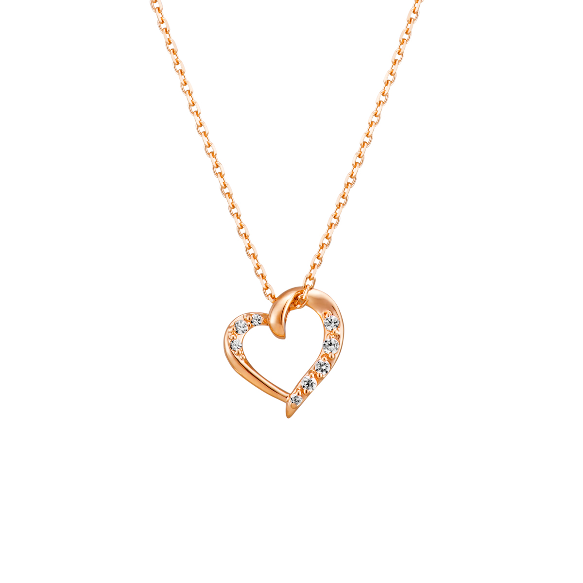 柔らかなラインにキュービックジルコニアが煌めき、温かみのある色合いのピンクゴールドコーティングを施した、可憐なデザインです。女性らしい、華やかな胸元を演出します。