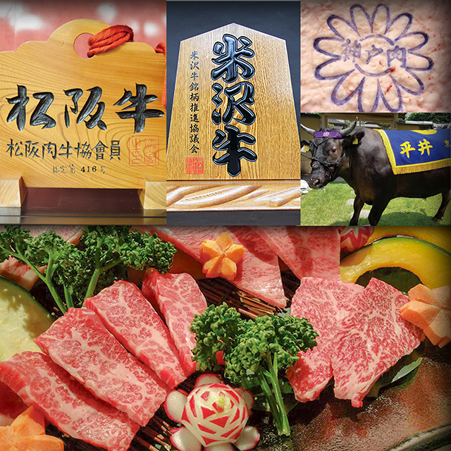 ●松阪牛…「肉の芸術品」と評される和牛のトップブランド。三重県松阪市及びその近郊で肥育された未経産の雌牛のことです。細やかな飼育環境により、肉質が柔らかいのはもちろん、霜降りがきめ細かく脂肪分に甘味があるのが特徴です。 ●神戸牛…兵庫県で生産された「但馬牛」からとれる枝肉が、日本一厳しいと言われる認定基準を満たした場合に呼称されるブランド名。欧米を中心に海外でも知名度が高く、世界の舌を魅了するおいしさの秘密は、脂肪の風味の決め手であるオレイン酸やうまみ成分のイノシン酸が豊富であることと言われています。 ●米沢牛…山形県の寒暖の差が激しい盆地特有の気候、自然の恵み豊かな山々から湧き出る清らかな水と澄んだ空気、家族同様に牛を扱う人情が「米沢牛」の質の高さの秘密にほかなりません。32ヶ月以上長期肥育した本物の味をお召し上がりいただけます。 ●飛騨牛…細やかな飼育環境により、肉質が柔らかいのはもちろん、霜降りがきめ細かく口の中でとろける芳醇な香りと味わいが特徴です。 ●黒毛和牛…きれいな水と豊かな緑、ストレスをかけない肥育環境で丹念に育てられ、農家の愛情がたくさん詰まった最高格付A5等級です。きめ細やかな肉質で、上品な柔らかさが特徴です。和牛特有の「和牛香」と呼ばれる甘い香り漂うお肉をどうぞお楽しみください。