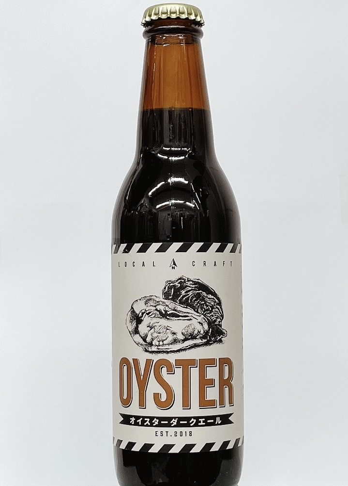 牡蠣は殻を使用した黒ビール。牡蠣のうまみがビールの後味にまろやかさを与えています。