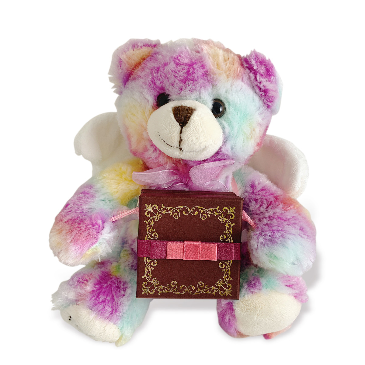 かわいらしいクマのぬいぐるみと一緒にお届けします。 幅広いシーンで身に着けられる上品なジュエリーを大切な方へ贈るのはいかがでしょうか?