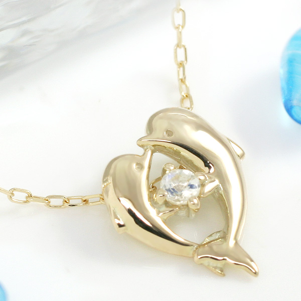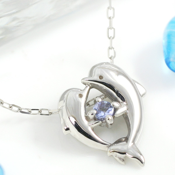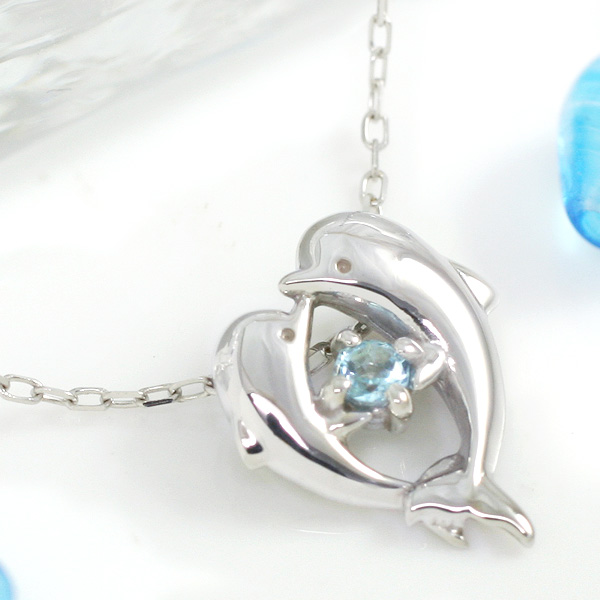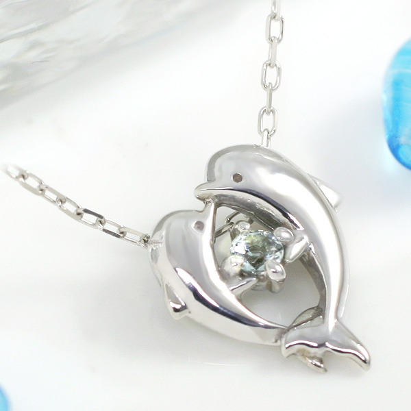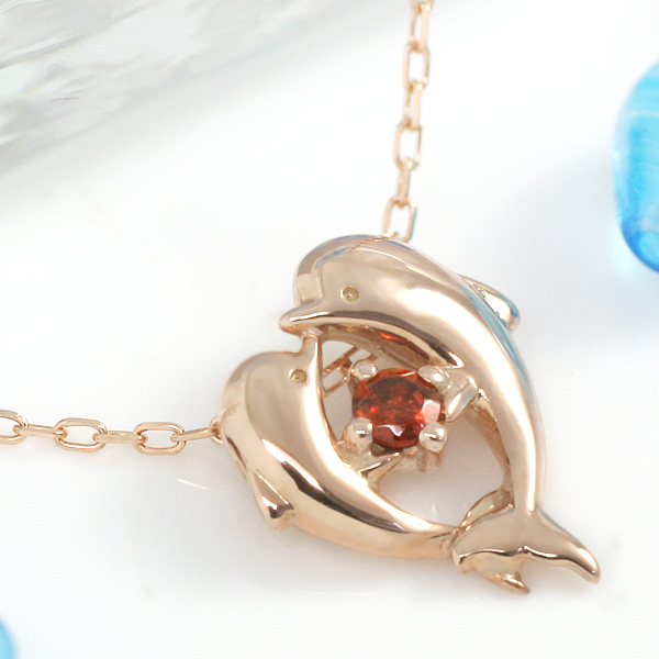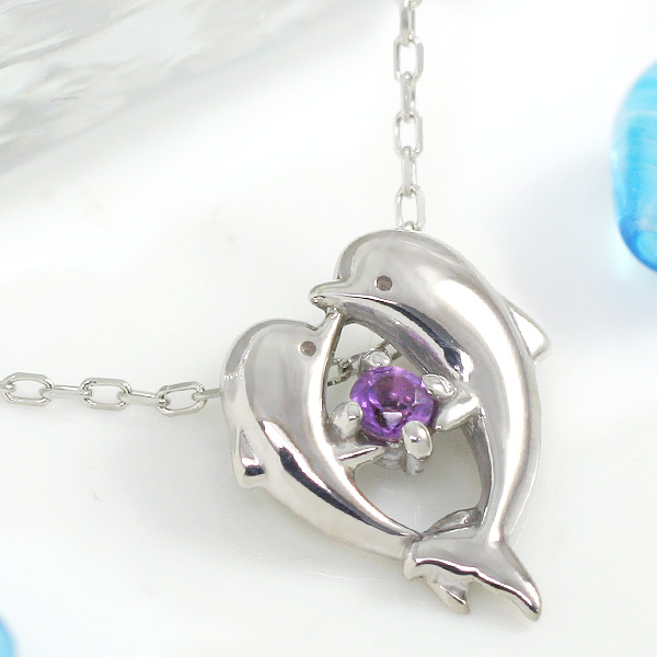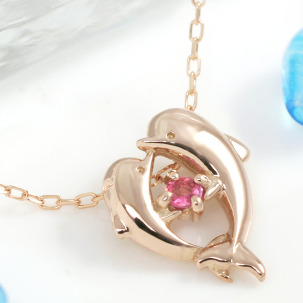 寄り添ったイルカの可愛らしいデザインのネックレスです。胸元に浮かび上がるシルエットは、ロマンティックなハートの形。艶やかなドルフィンハートの真ん中には誕生石が輝いています。より特別感を感じる贈り物になります。