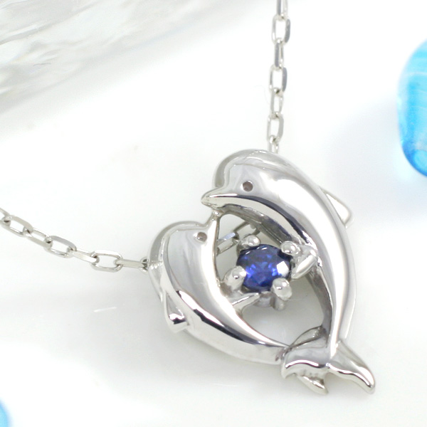 艶やかなドルフィンハートの真ん中には9月の誕生石サファイアが、 海よりも深い恋心のような輝きをキラキラと放ちます。