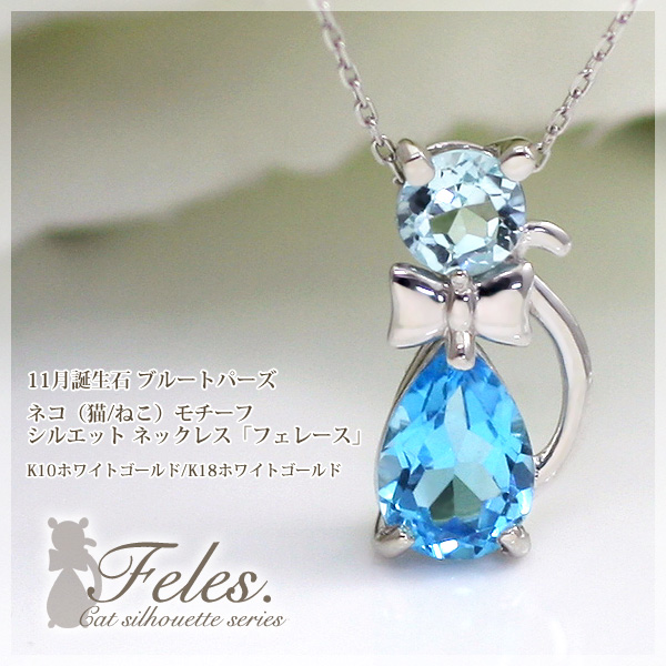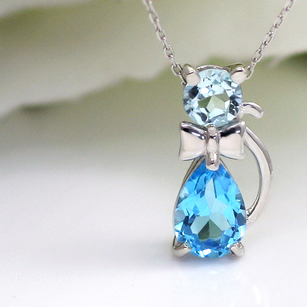 11月誕生石ブルートパーズ 猫モチーフネックレスl60-5255-bt