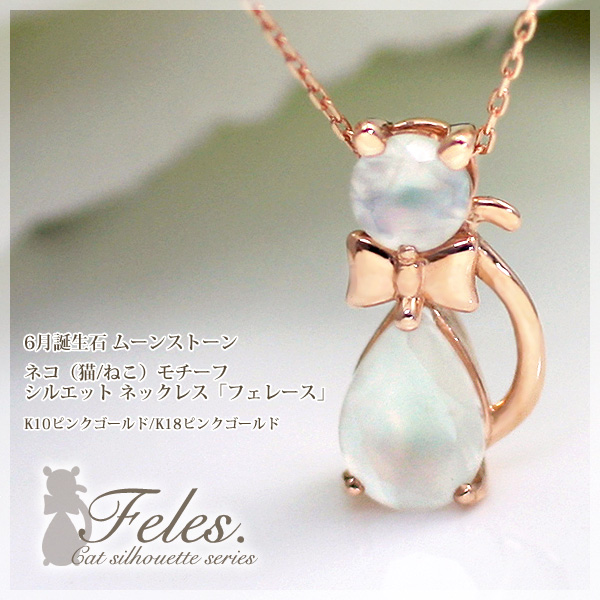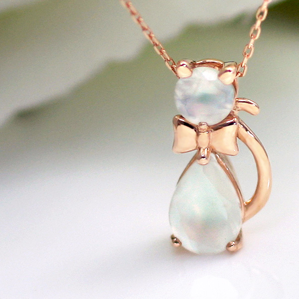 6月誕生石ムーンストーン 猫モチーフネックレスl60-5256
