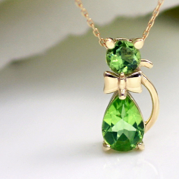 8月誕生石ペリドット 猫モチーフネックレスl60-5257